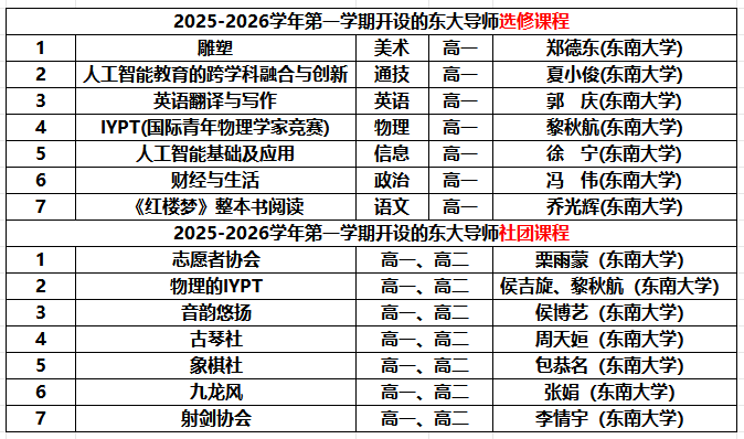 以江宁分校“科学高中”建设为核心抓手,两校围绕师资培训、课程共建、学生发展指导、资源共享、项目融通五大维度,打造了全方位、立体化的拔尖创新人才培养体系。东南大学充分发挥自身学科优势与资源禀赋,为江宁分校高中学生提供了丰富的学术支持与成长平台。不仅委派专家学者开展科学前沿讲座、指导研究性学习,还开放大学课程选修资源,助力学生夯实学科基础、拓展学术视野;同时,在生涯教育、社团活动、高水平运动队建设、艺术团发展等方面给予专业指导,更通过“走进东大”研学活动、“未来卓越工程师”、“中学生英才计划”、科学素养启蒙课、科创体验营等特色项目,让学生提前感受大学学术氛围,激发创新潜力与专业兴趣。