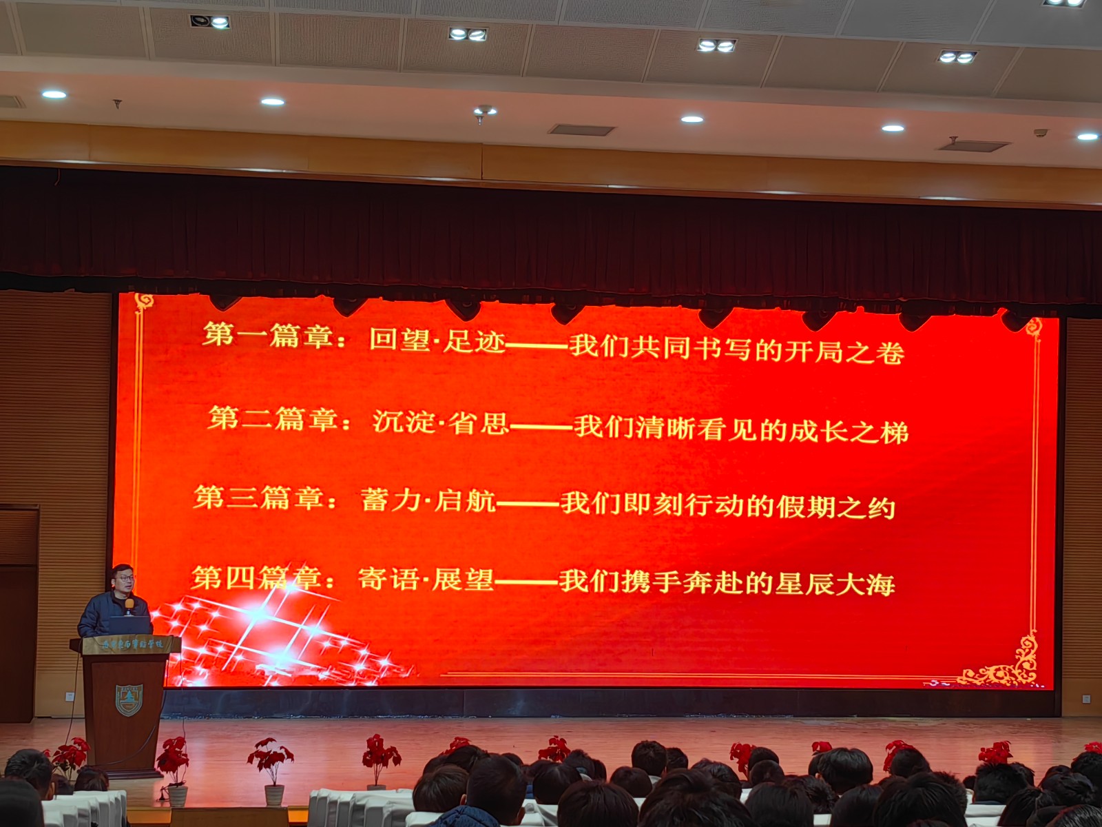 2月5日晚,高三年级期末表彰大会在报告厅举行,对学业优异学生予以表彰,优秀学生代表分享学习心得。学生发展中心纪湘元副校长、高中部周天航校长、高三年级万滨主任作主题发言,引导高三学子用好寒假备考黄金期,砥砺前行,稳中求进,以更加饱满的热情迎接未来的挑战。