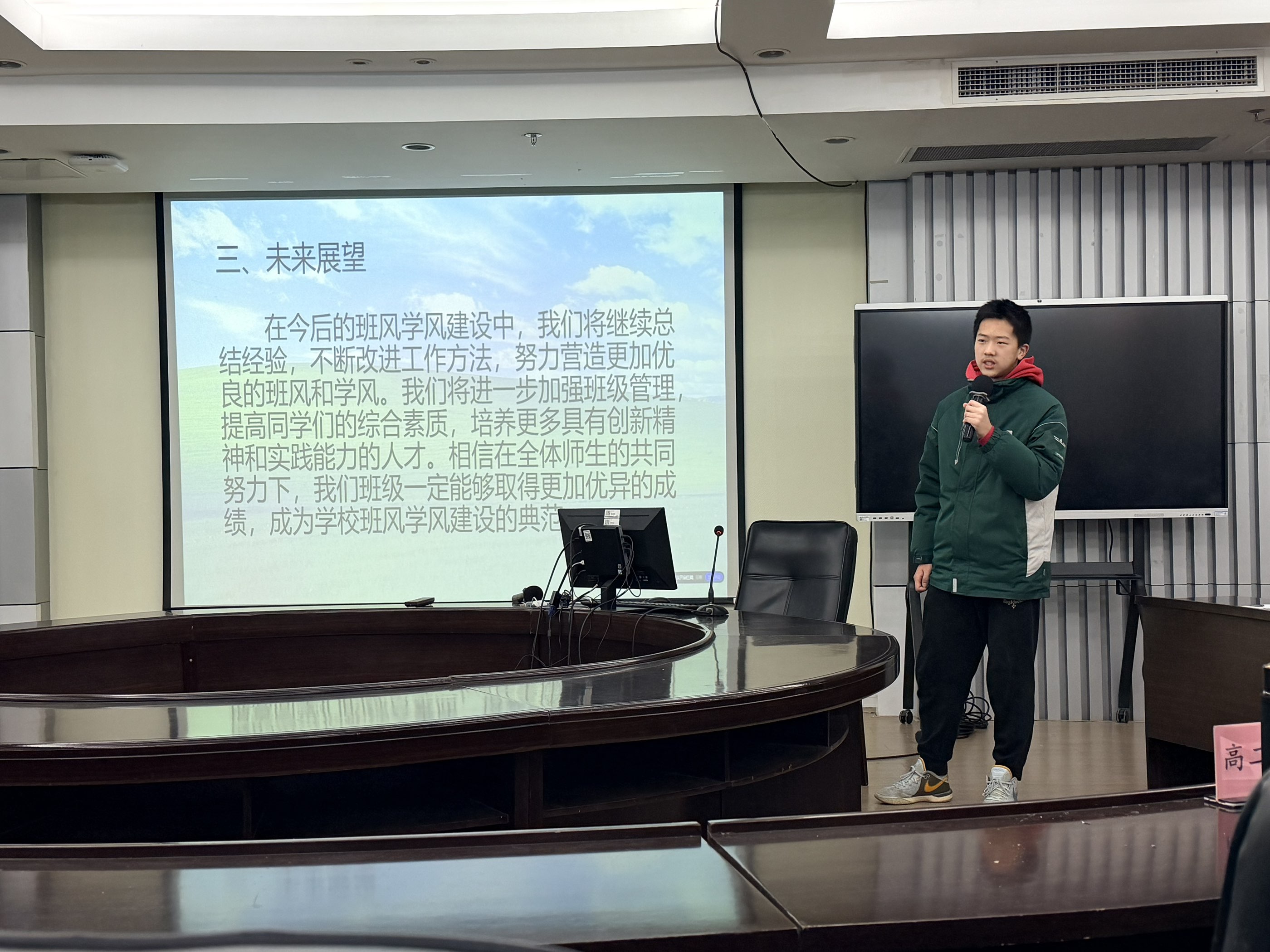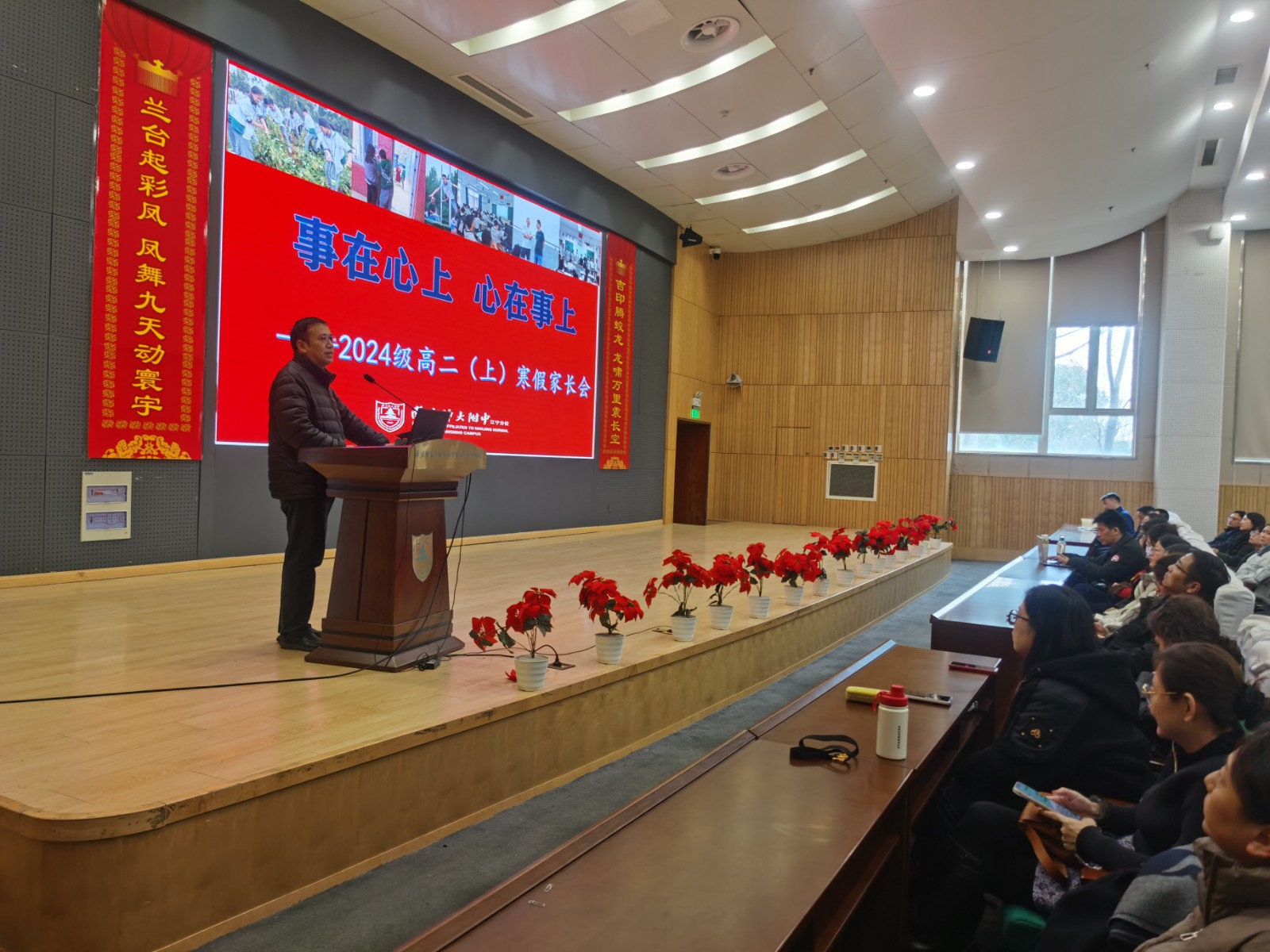 同日,高二年级结业大会顺利开展,周天航校长、胡家友主任结合期末成绩分析年级学业情况,明确问题与不足,肯定师生付出;各班级也分别回顾学期得失,展望新学期愿景。