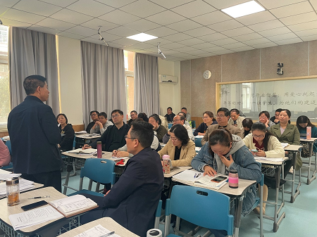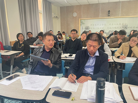10月26号下午,初中、高中、国际部数学组老师齐聚一堂,新一学期的“备课组项目研究”开题论证活动在A4-101录播教室举行。本次活动由教研组长王波凤老师主持,邀请了两位外聘专家:特级教师卜以楼和特级教师张云飞。活动流程为:首先七位备课组长就本组研究课题作3-5分钟开题汇报,内容围绕“存在问题、研究目标、操作方法、任务分工、预期成果”等方面展开。随后两位专家就开题报告的内容逐个发表意见和建议,备课组成员认真记录、完善研究方案,填写《备课组教学项目研究开题论证意见》并汇总。此次活动是学校为了更进一步加强和推进教师对课堂教学的研究,提高课堂效率的备课教研特色活动。活动最后各备课组还总结了以往 “教学研究项目”存在的主要问题,并针对问题开展研讨,大家收获良多。