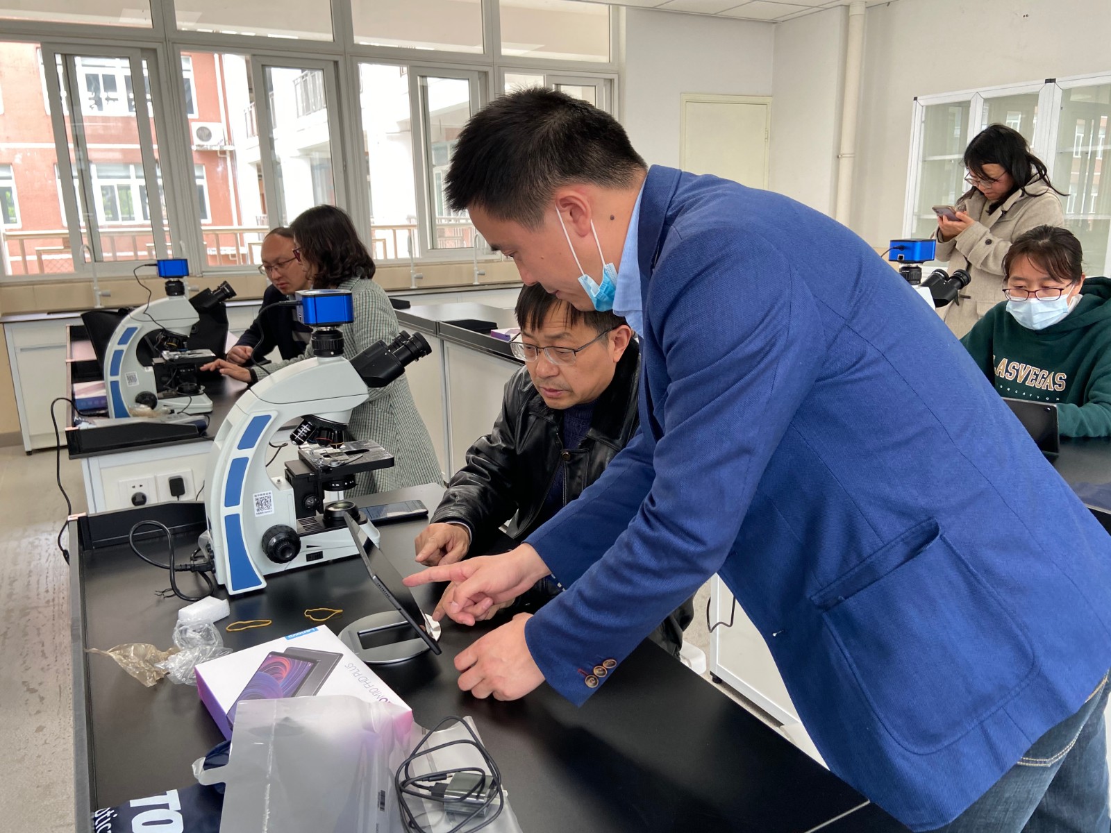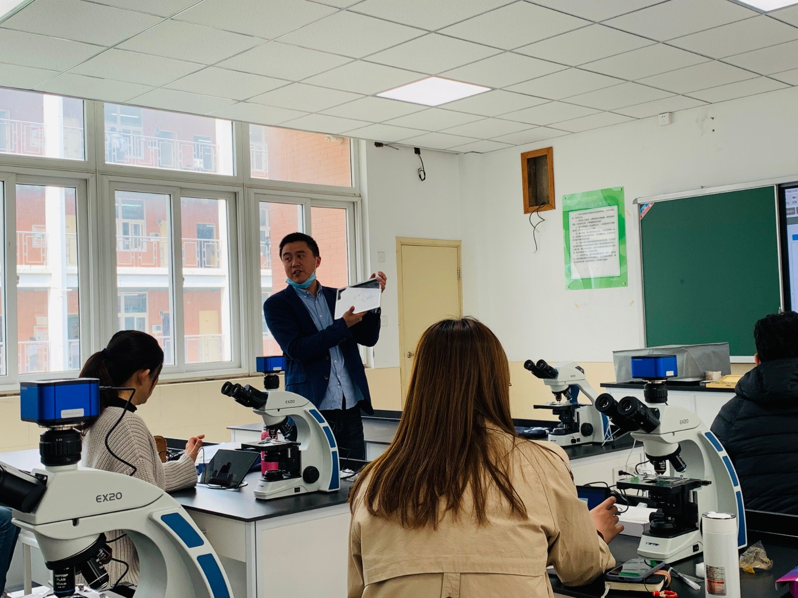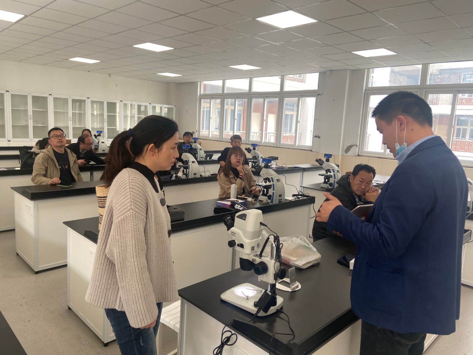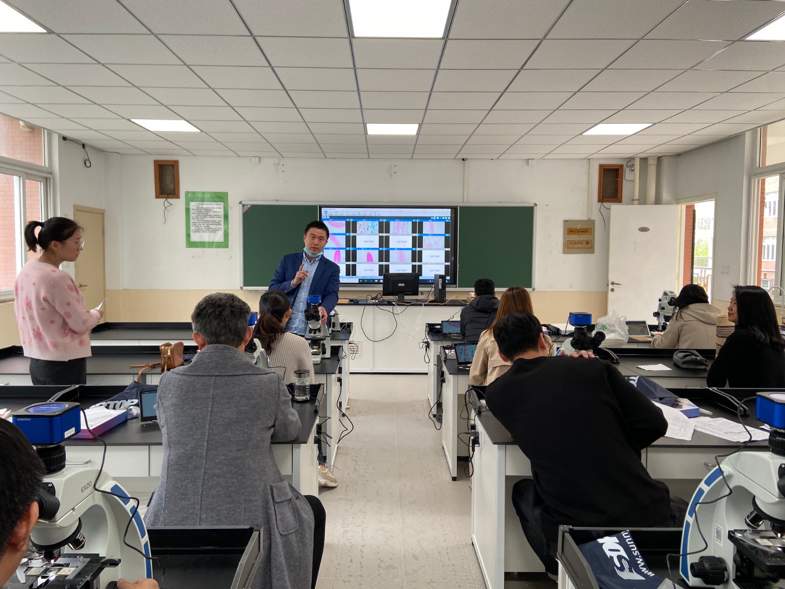 4月6日下午2:30分,高中生物组第三次教研活动在实验室B2楼201进行,邀请了显微镜厂家为全体生物教师进行新型显微镜使用培训,为老师们开展智慧教学添助力。