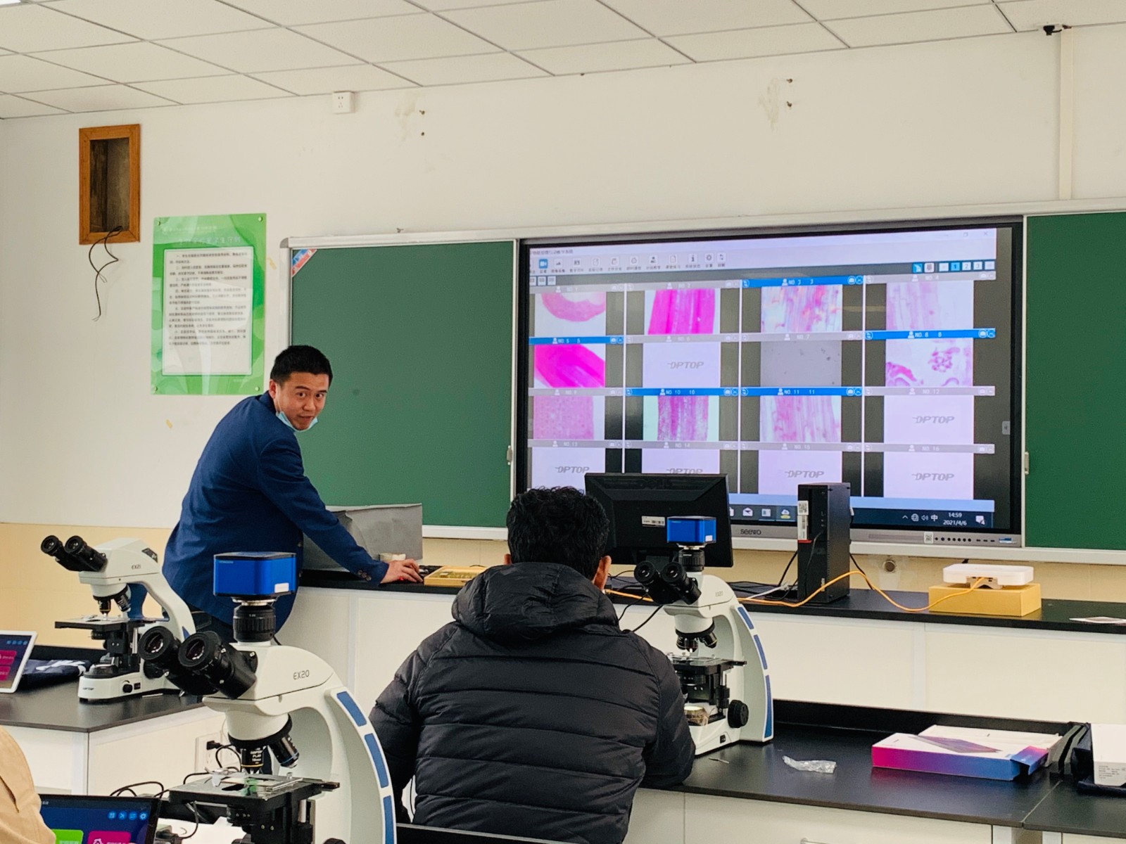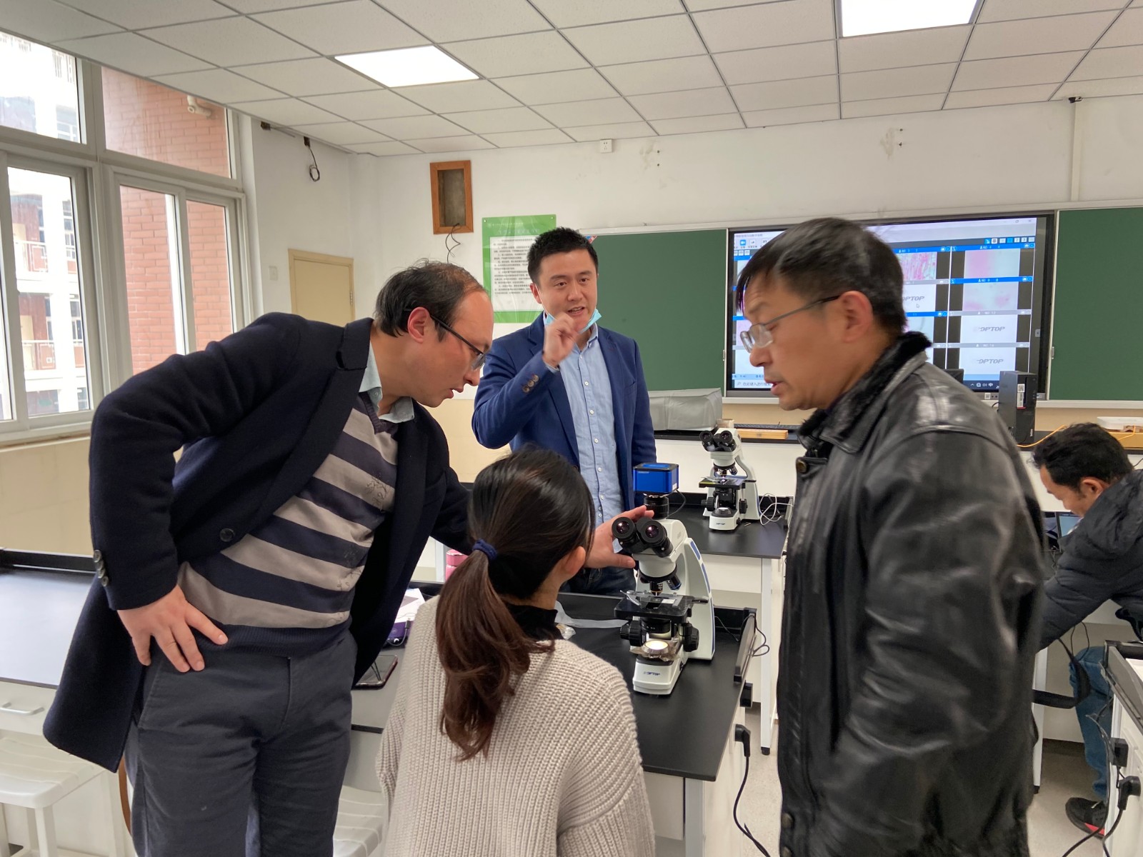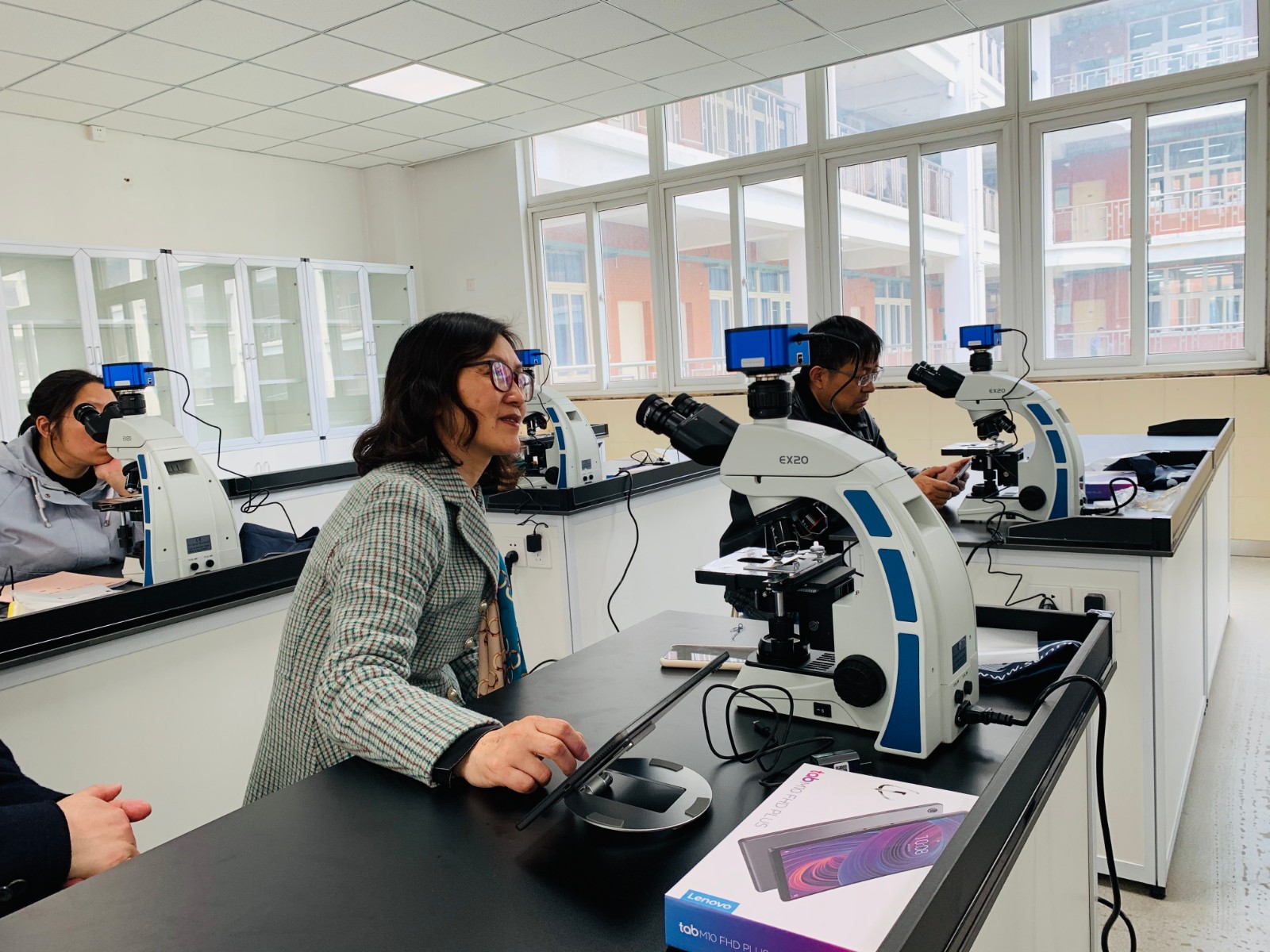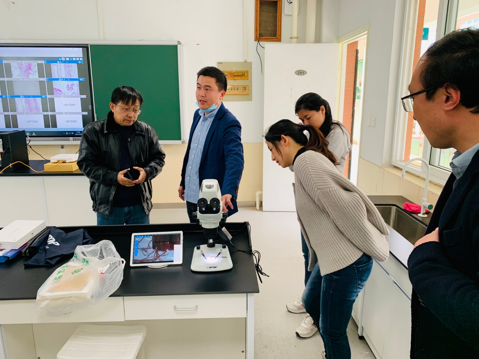 4月6日下午2:30分,高中生物组第三次教研活动在实验室B2楼201进行,邀请了显微镜厂家为全体生物教师进行新型显微镜使用培训,为老师们开展智慧教学添助力。