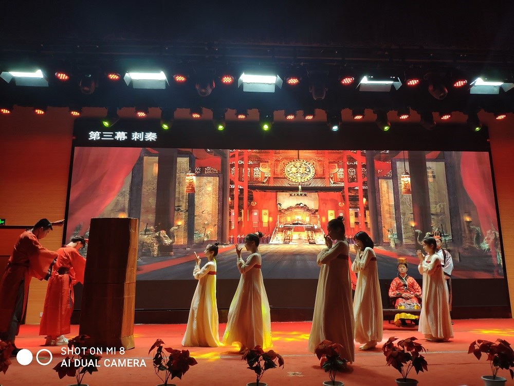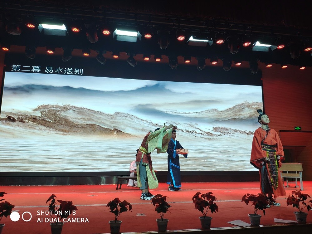 6月4日晚,江宁分校的音乐厅气氛非常热烈,原来这里高一年级的话剧表演,由高一2班演出的历史剧《荆轲刺秦皇》赢得了观众一次又一次的热烈喝彩。历史剧表演一直是我校高中部历史学科特色活动之一,从剧本的选取与创作、表演,要求学生尊重基本历史史实、历史情境再现,不但调动了学生历史学习的兴趣,还丰富了学生课余的学习生活。学生们从表演、灯光、道具、服装、音乐等各方面自己创作,是一次难忘的校园艺术体验活动。