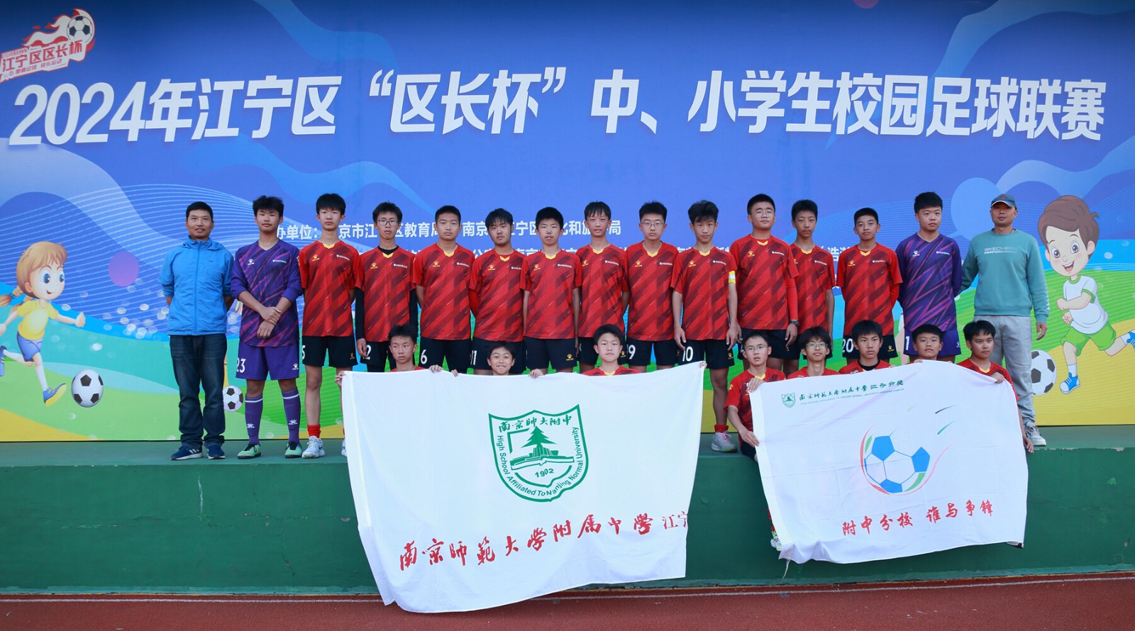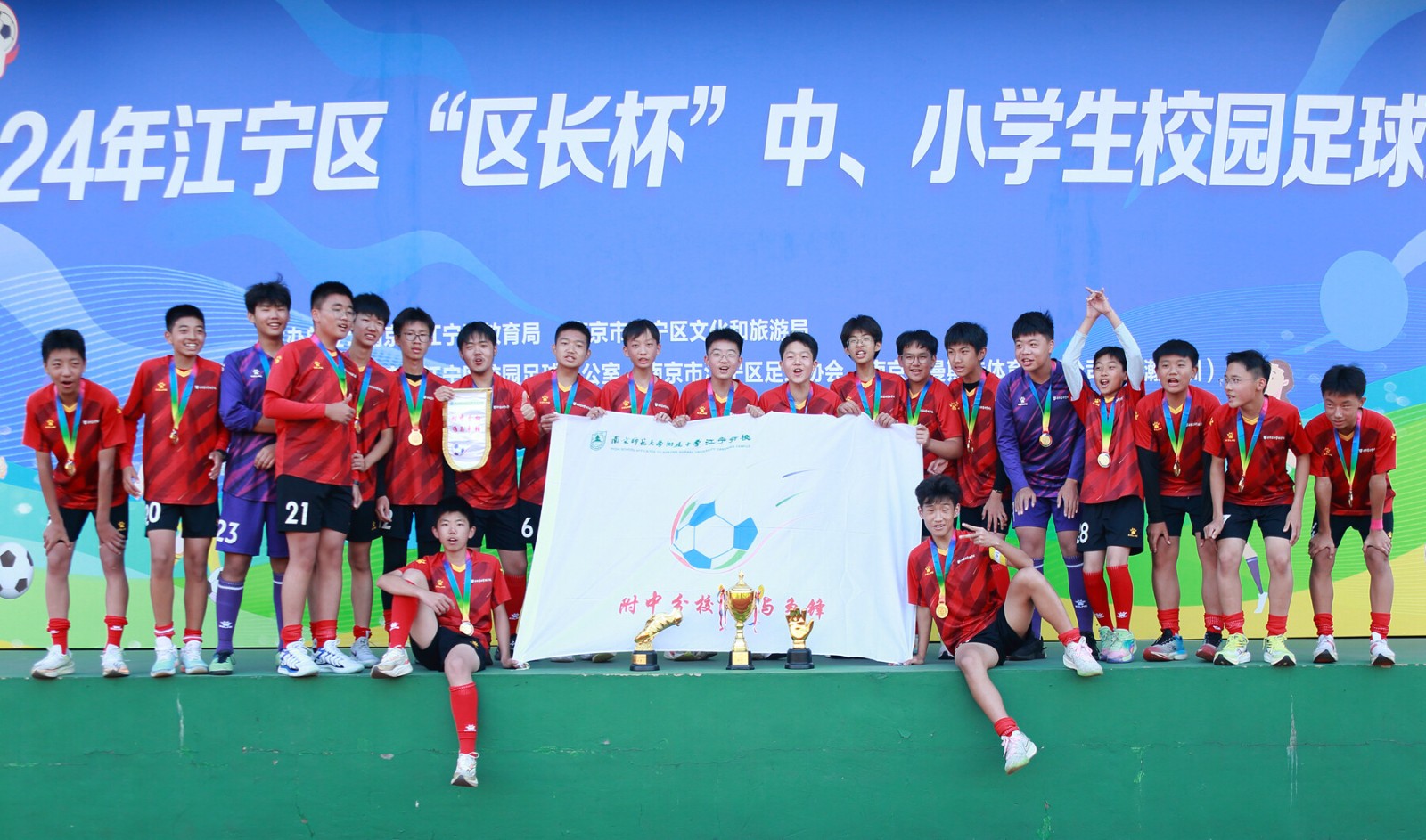 我校初中男子足球队于9月13日开始组队训练,克服训练时间短等困难积极参赛。在比赛中我校队员面对众多强队毫不畏惧、顽强拼搏,经过六场比赛的激烈角逐,我校最终以全胜的战绩再次蝉联江宁区“区长杯”足球联赛的冠军。比赛过程中,队员以良好的技战术素养和体育精神面貌,展现了我校校园足球的特色与水平,赢得了对手、家长和裁判的一致好评。