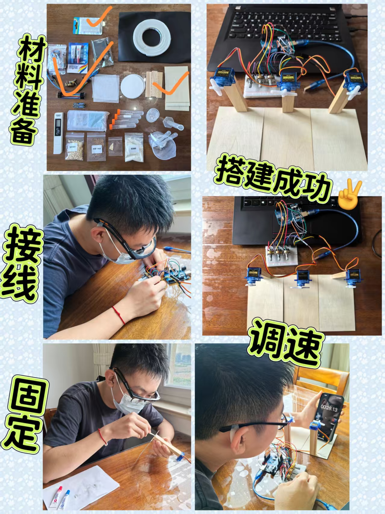 第一组“微重力”课题通过自制回转器模拟微重力环境,以水萝卜和刚丝绒泡菌为研究对象,探究微重力对生物生长的影响。实验对比了微重力与正常重力下两者的形态变化和生理活性,为理解太空环境下生物生长发育提供了有益参考。