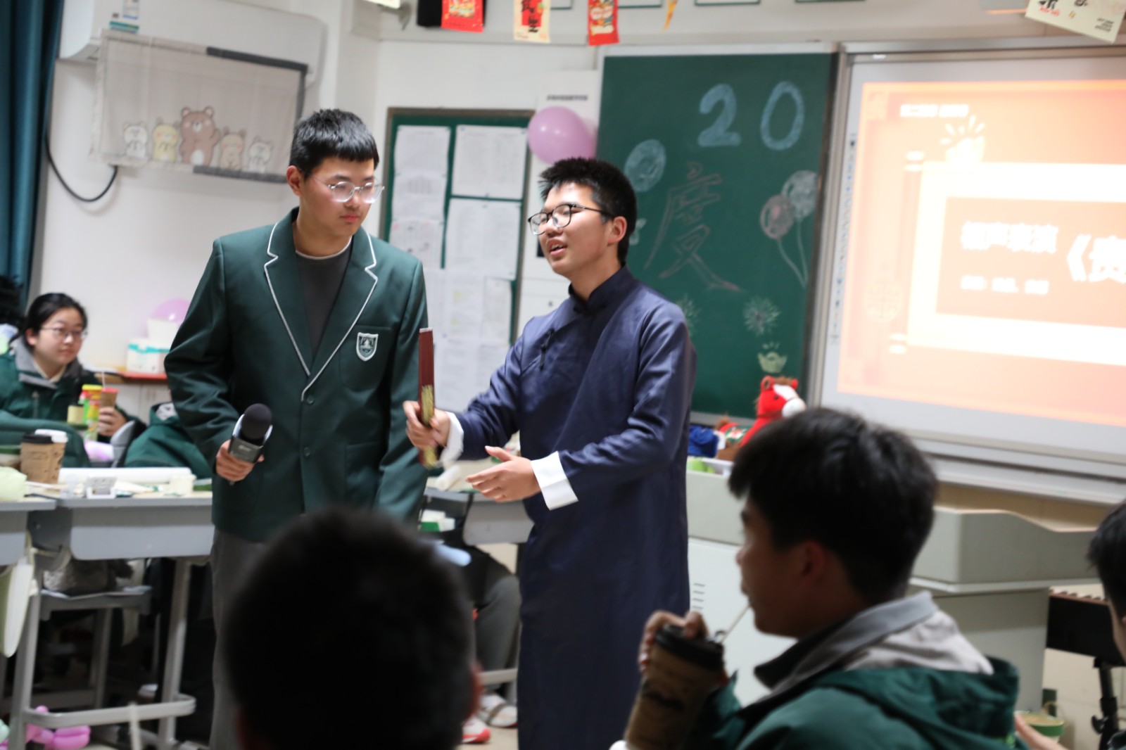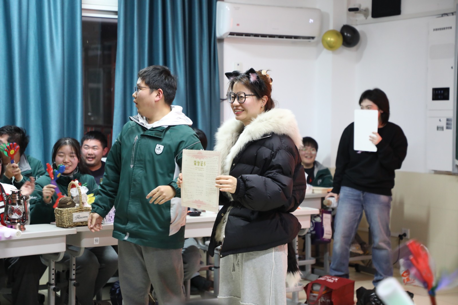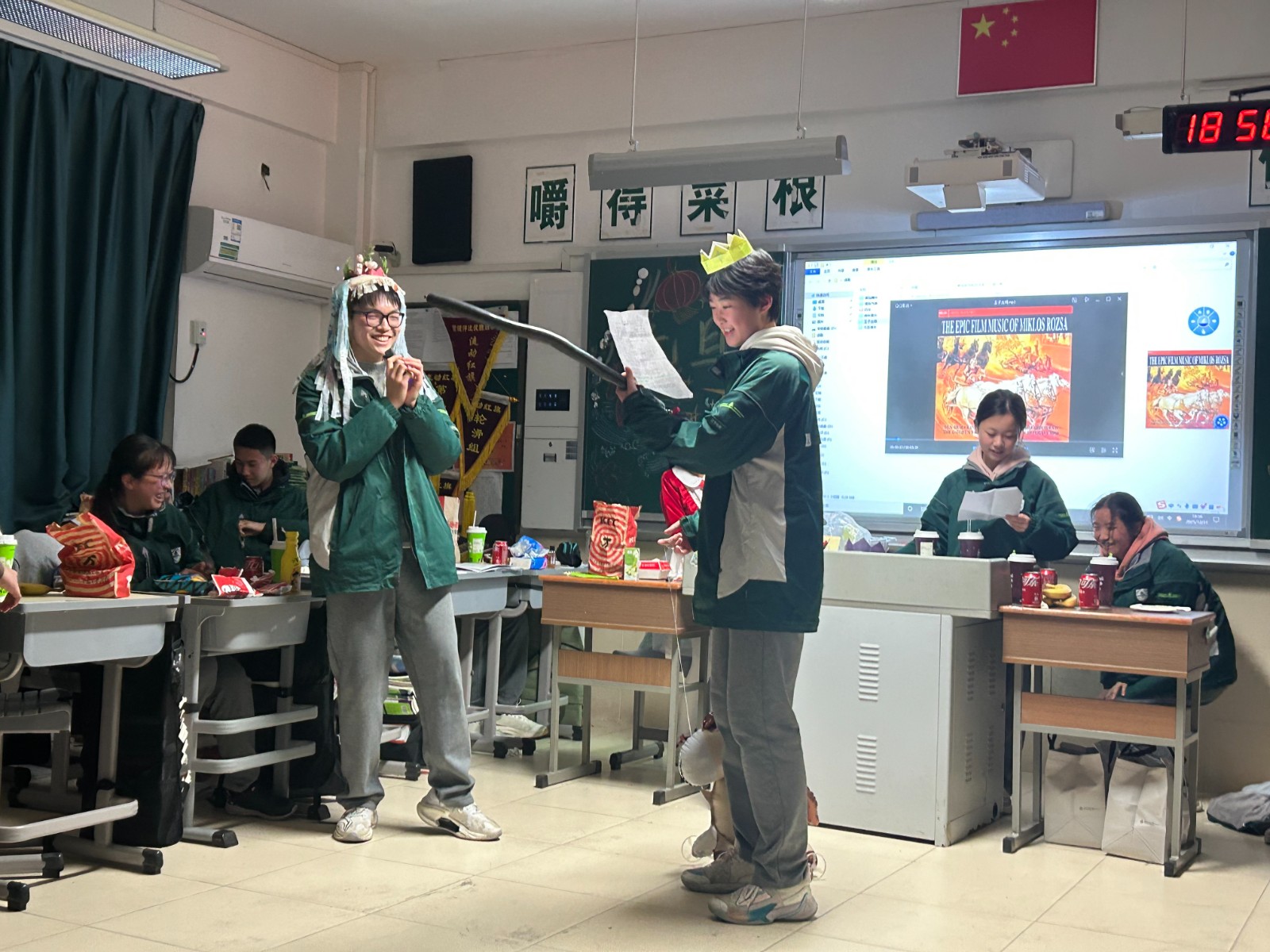 夜幕降临,校园的热闹氛围丝毫不减。18:00起,高学部元旦迎新联欢晚会在各班隆重开展,各班门口张灯结彩。班级年度总结回顾过往收获,学生表彰环节为优秀学子加冕,精彩的文艺节目轮番上演,歌声、掌声、欢呼声不绝于耳。