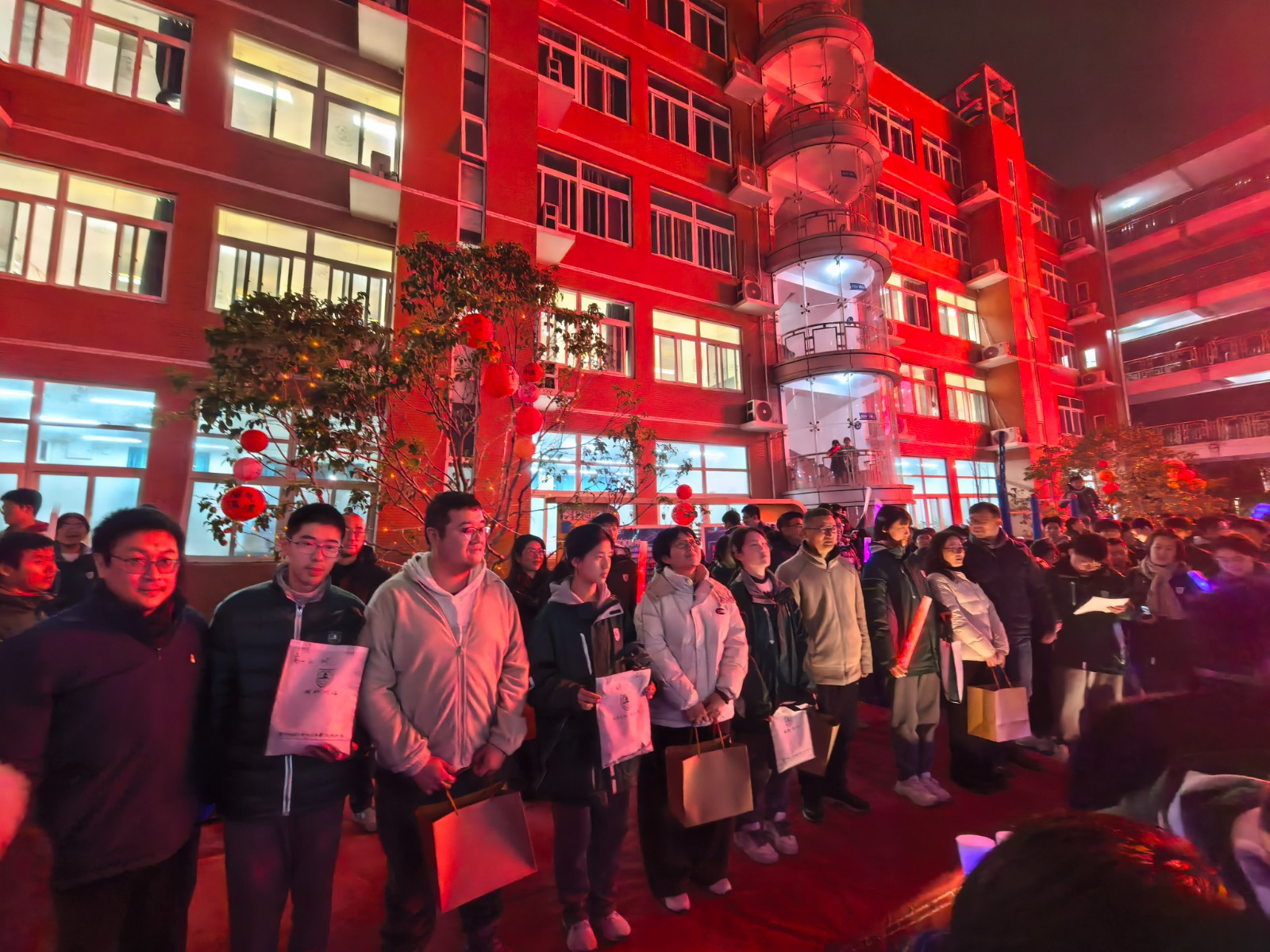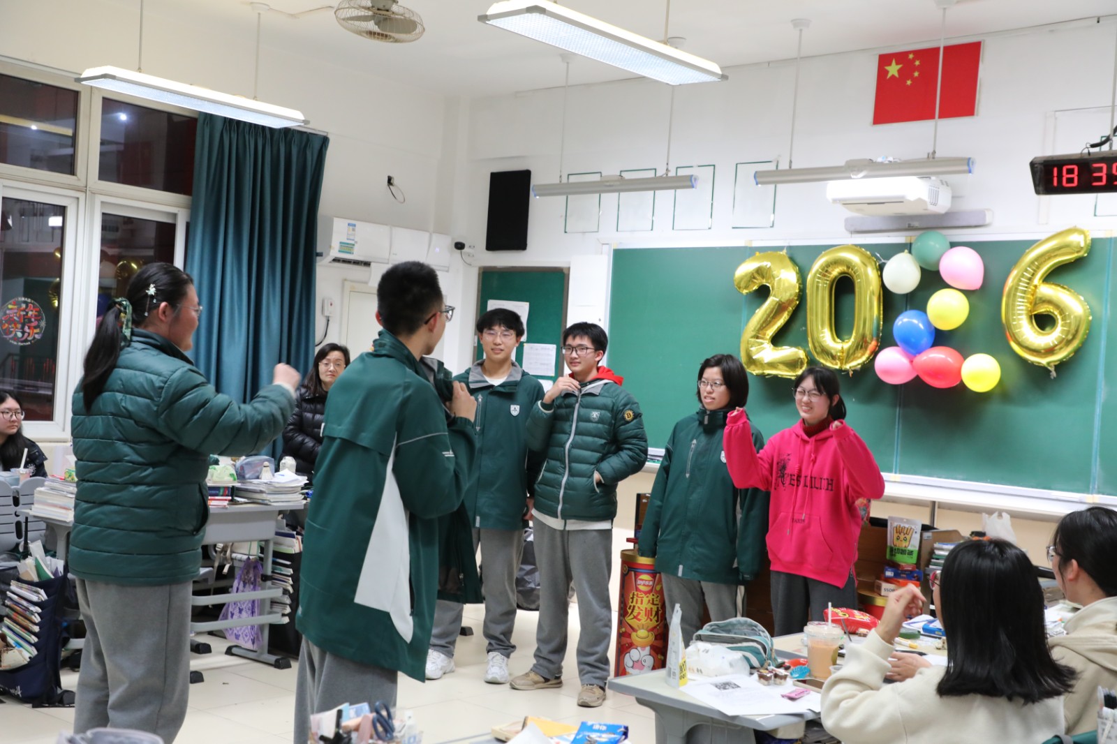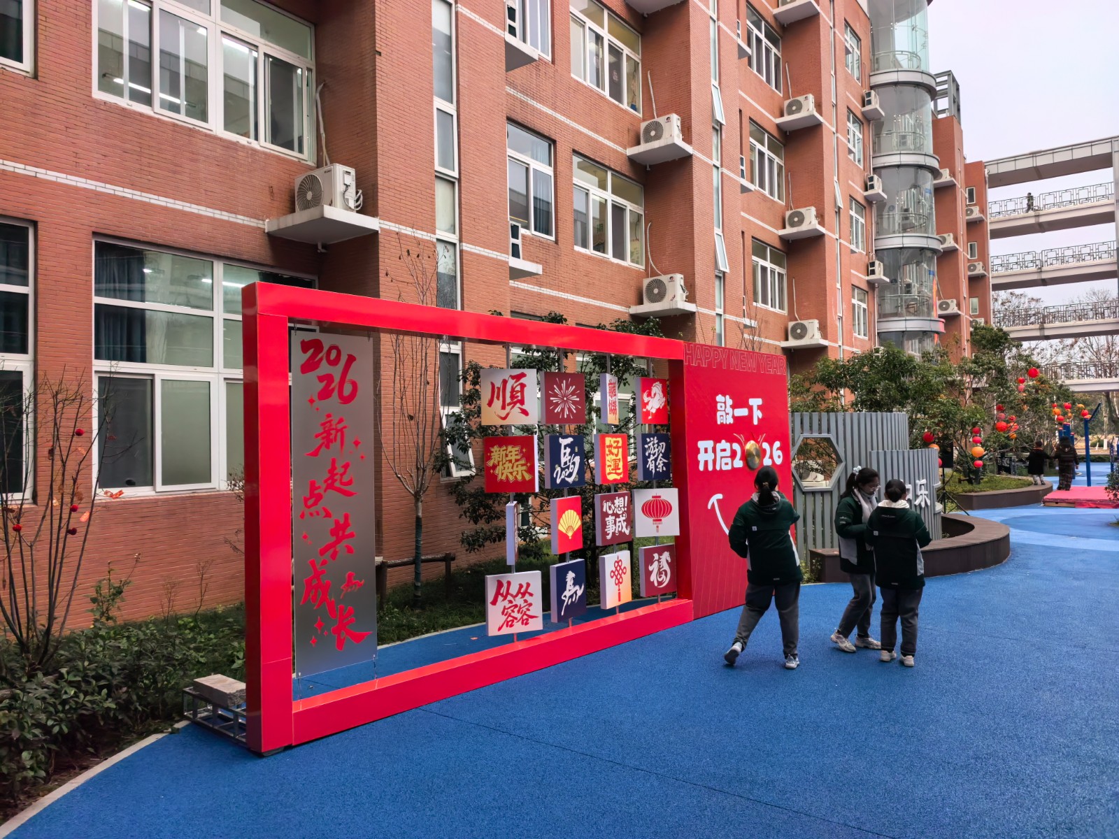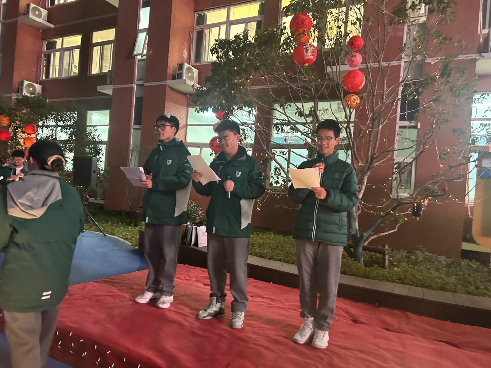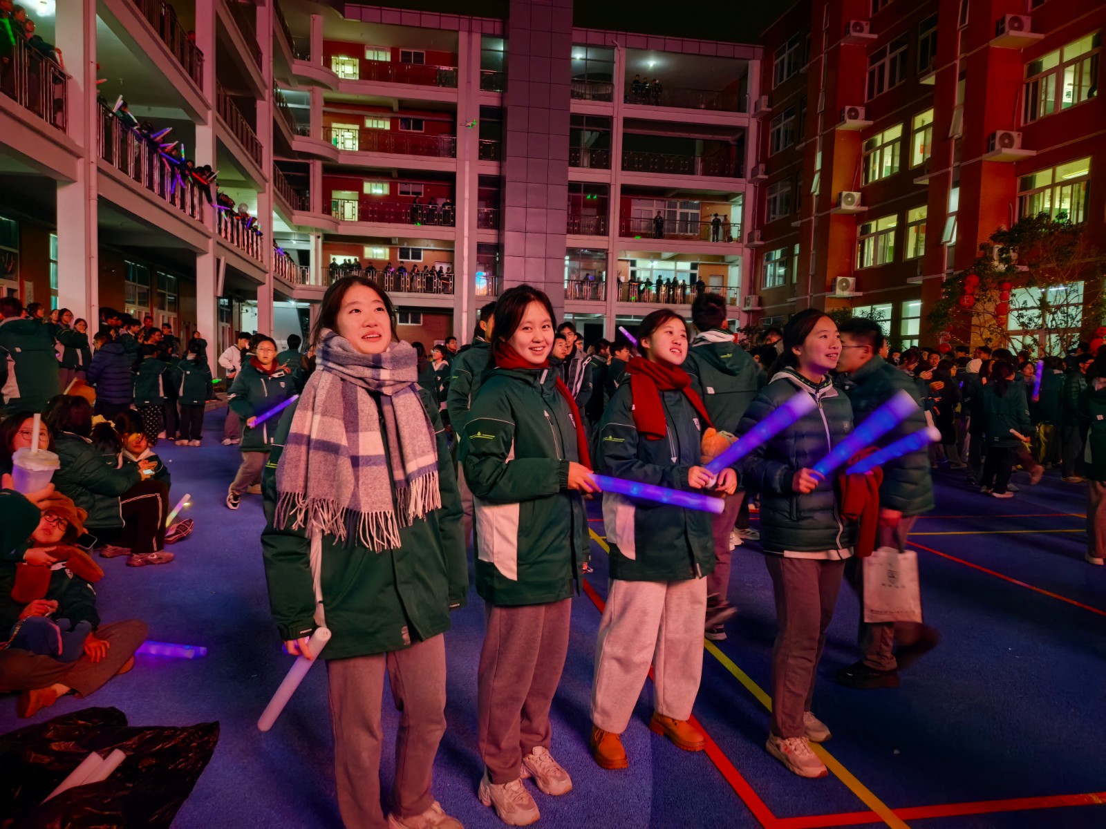 晚20:00的庭院跨年活动将整场迎新活动推向高潮。热场音乐点燃全场激情,《再见2025》的旋律带领师生回望过往;随着倒计时声响,全场师生共同迎接新年的到来。劲歌劲舞展现着青春活力,高中部管理人员向班主任们送上新春祝福,周天航、纪湘元敲响新年钟声,悠扬的《难忘今宵》旋律中,整场迎新系列活动圆满落幕。