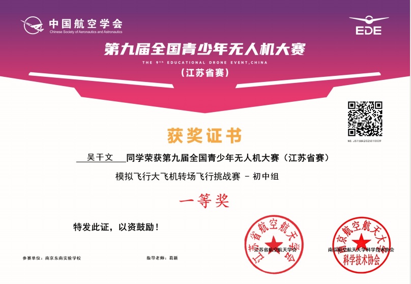 每一块分量十足的奖牌,都映照着队员们执着与奋进的光彩。无论是整学期扎根社团钻研编程,还是课余时光争分夺秒开展加练;无论是面对一次次试飞失利时的咬牙坚持,还是站上最终赛场时沉稳发挥的从容模样——这群心向蓝天的逐梦少年,以坚韧不拔的意志实现了自我的精彩蜕变,在赛场上续写了南京东南实验学校无人机队的荣耀新篇!