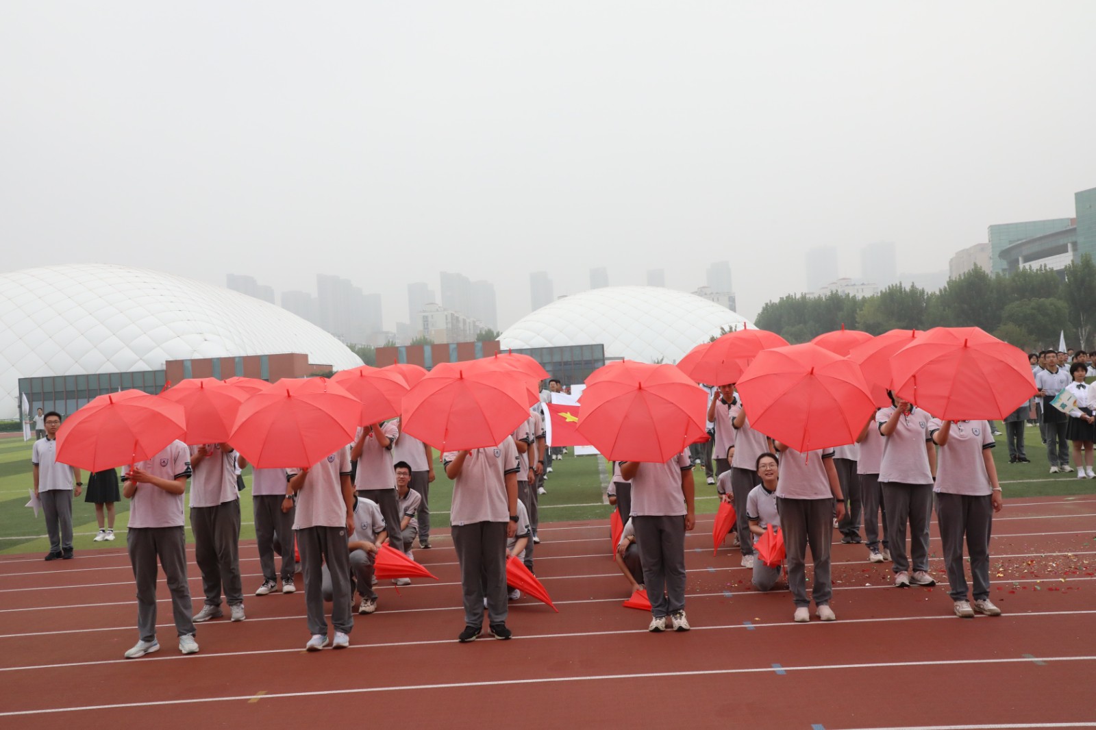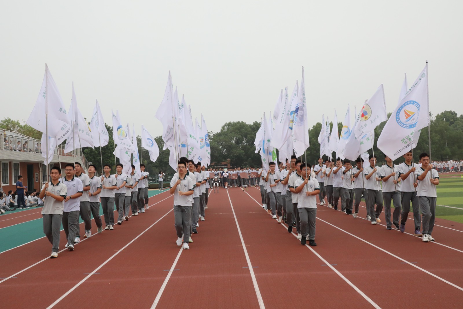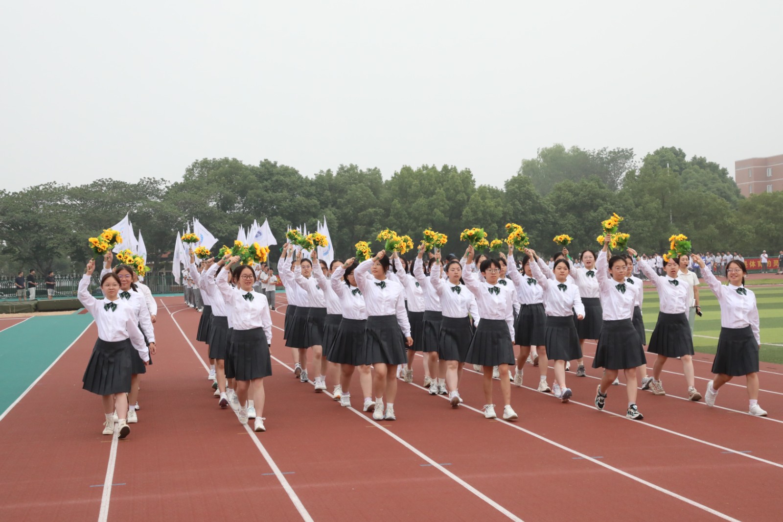 校旗方阵高举校旗,传递敢拼搏、勇争先的力量。