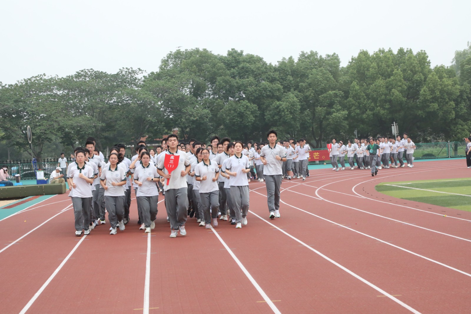 高三年级跑操步伐坚定、口号铿锵,展现冲刺未来的决心。