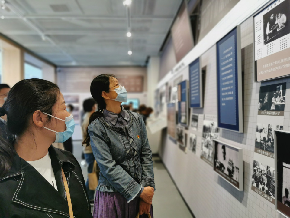 我们首先来到理想信念厅,在这里,我们了解了陶先生的求学经历,在这个过程中,先生逐渐确定了“教育报国”的理想信念,了解了他办学的三个重要时期:晓庄师范、山海工学团和育才学校。通过图片和物件,我们看到了陶行知先生脱掉西装革履,穿上布衣草鞋,告别城市的舒适生活,在晓庄创办试验乡村师范学校,去当“挑大粪”的校长,亲自培养乡村教师,开展乡村教育运动。
