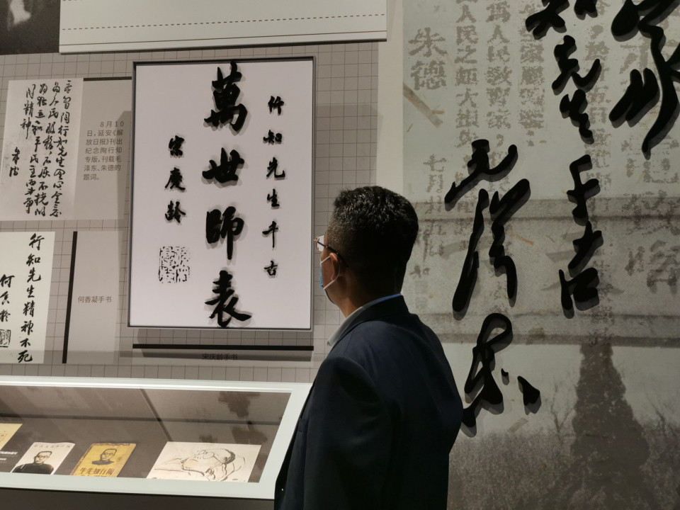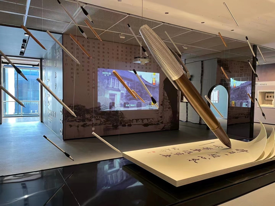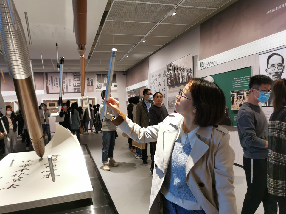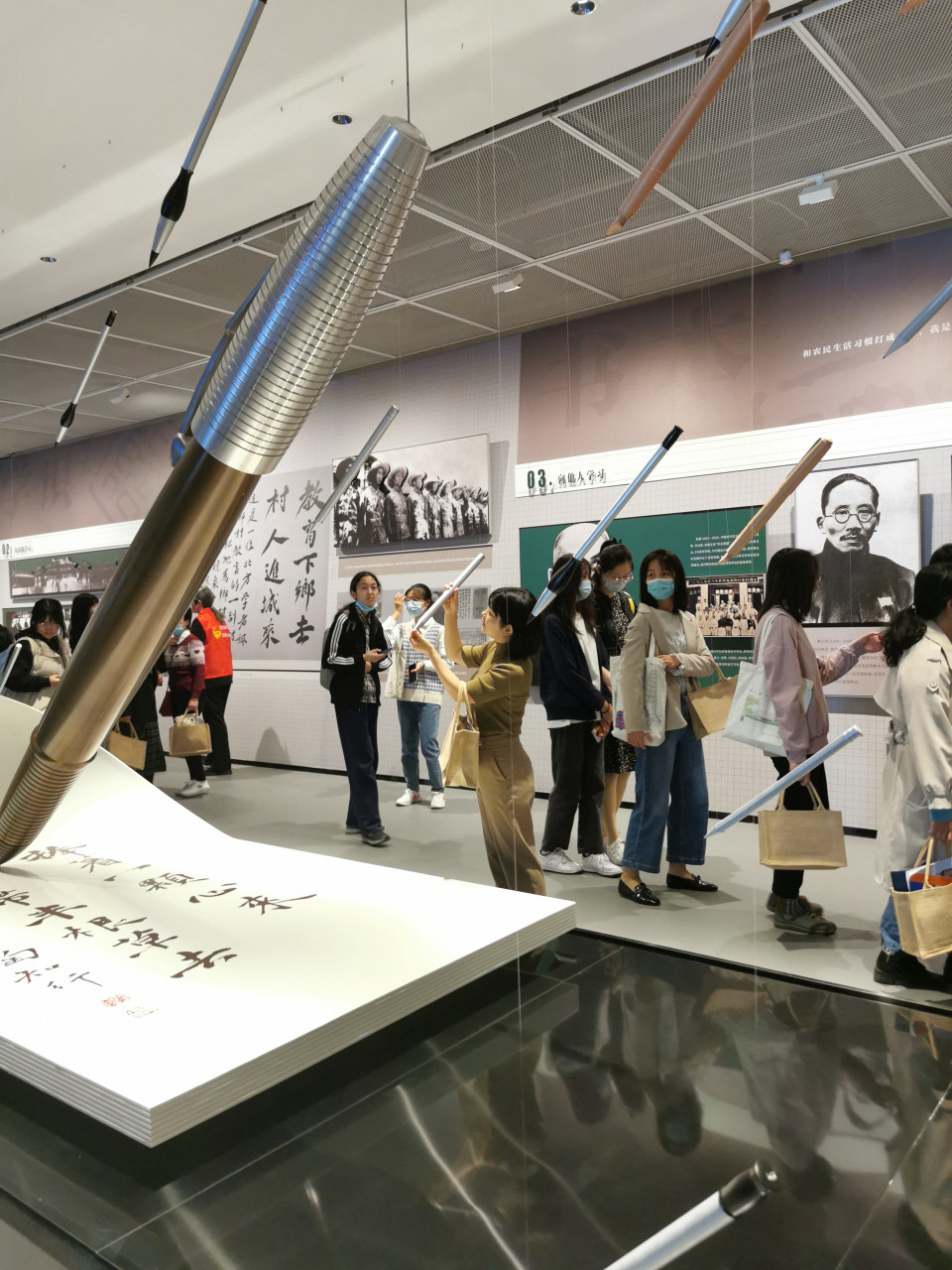 在扎实学识展厅中,我们明白了“知行合一”,“出生便是破蒙,进棺材才算毕业”的终身学习的理念;我们看到了陶先生向书本学习、向实践学习、向别人学习、向国外学习、向人民学习的学习精神;了解了陶行知先生一生的学习经历。这里展陈着陶行知学习时用过的砚台、墨块、钢笔等。展厅中央是一支巨大的钢笔,是将陶行知生前所用钢笔同比例放大20倍制作而成,代表他笔耕不辍,勤于学习,后人整理的全集有十二卷,诗歌有八百多首,他始终在孜孜不倦的学习。捧着一颗心来,不带半颗草去”是陶行知奉献精神的体现。
