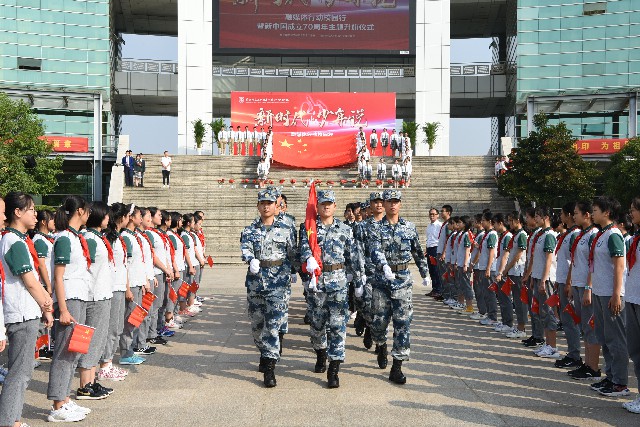 在新中国成立70周年之际,9月29日上午,我校9000余名师生齐聚中心广场,与扬子晚报共同举行“新时代·少年说——庆祝新中国成立70周年”主题升旗仪式。