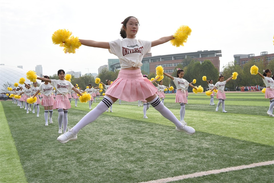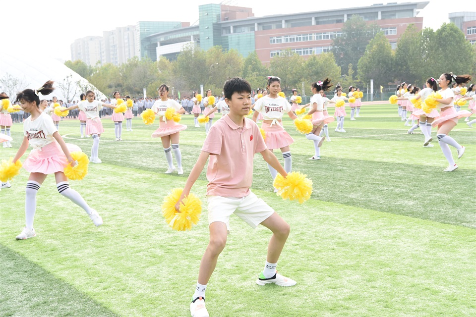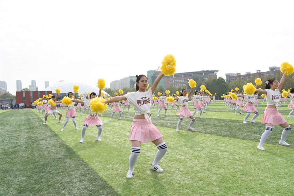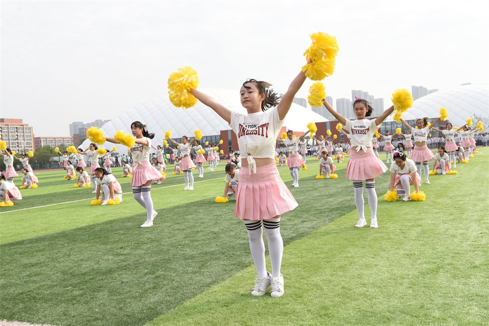 啦啦操的出场,可说是惊艳无比,舞蹈、音乐、健身、娱乐融为一体。整齐而优雅,灵活而欢快,朝气蓬勃,活力四射,这是青春最炫的绽放。