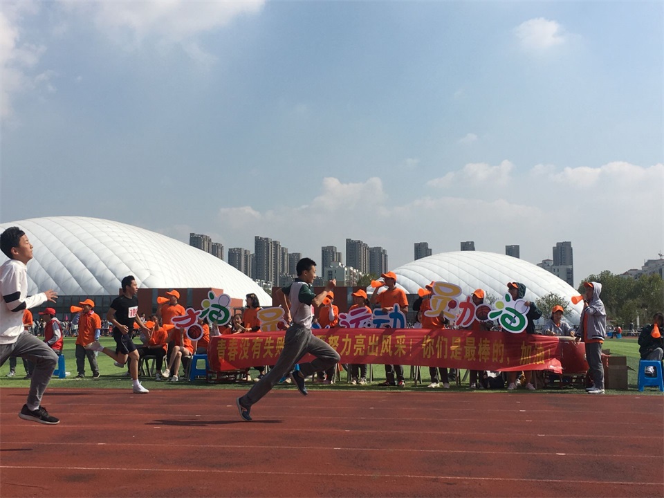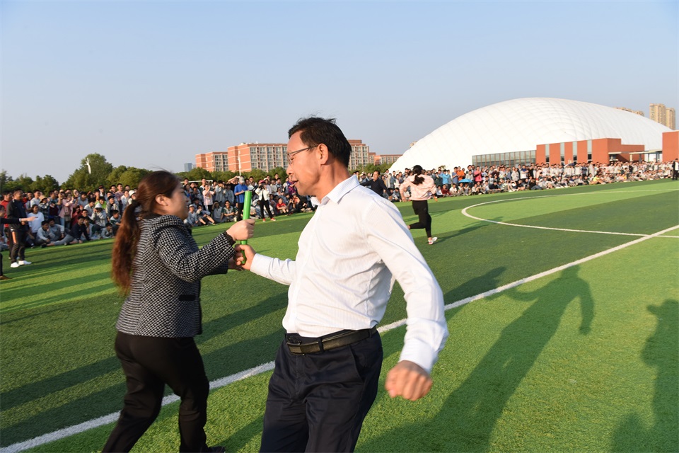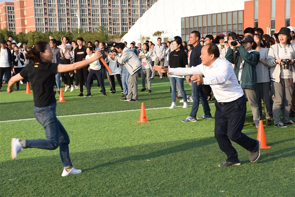 弘扬体育精神,运动、健康、快乐!老师们热情的呼唤,炽热的关爱,如温暖的秋阳带给学子无限的力量!而这一切在一场教师迎面接力的趣味活动中达到了高潮,同学们的欢呼、呐喊、加油响彻蓝天。原来,他们,有着为人师者的沉稳,也有着令人莞尔的可爱!