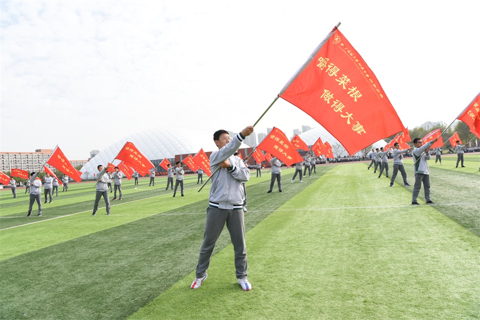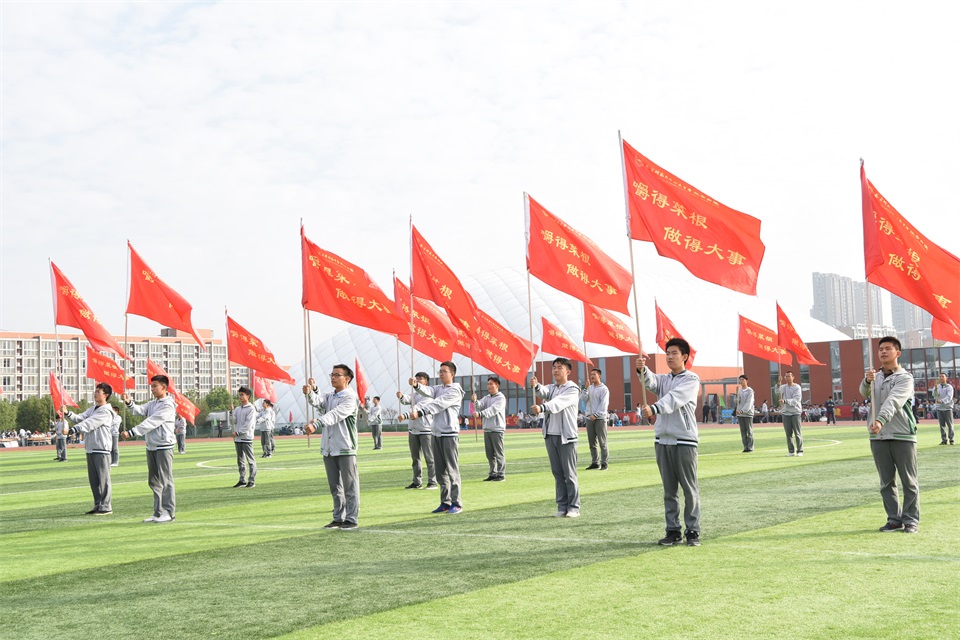 阳光灿烂,彩旗飘飘。我们的校旗在秋风中飞扬,在学子的舞动中猎猎作响。这是高一学子在用自己独特的方式来表达对母校深沉的爱。