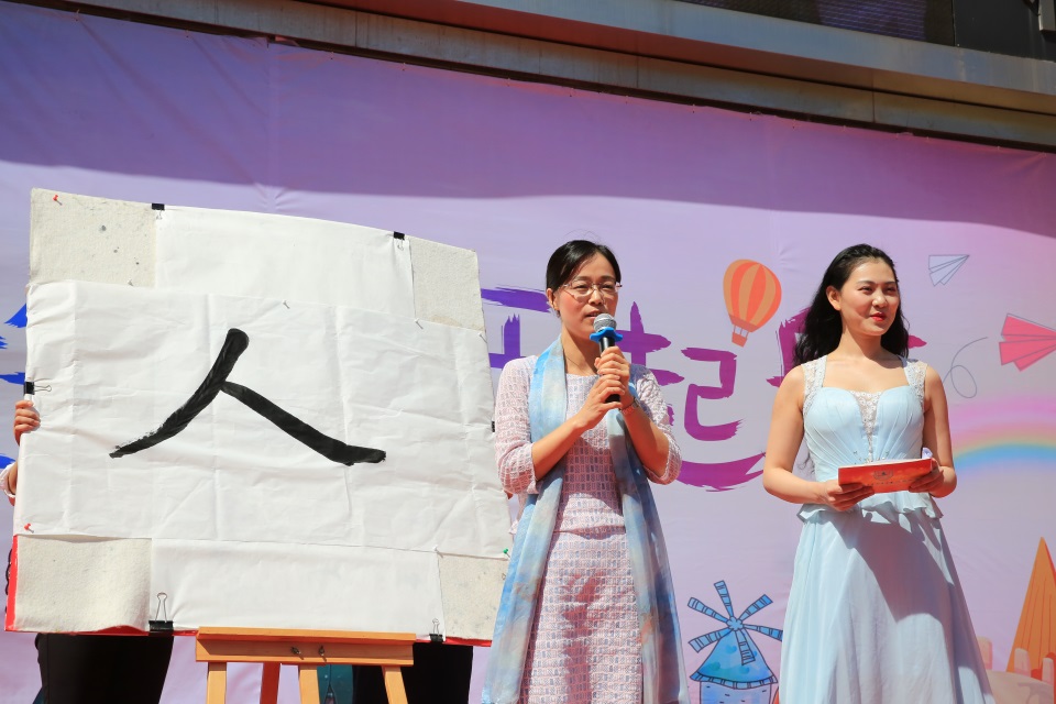 伴随着《生长吧》的乐曲声,师生们放声歌唱,舞动全场,将仪式现场推向了高潮。中国书法家协会的王博文老师现场带领孩子们写了一个大大的“人”字,希望孩子们像“人”字一样相互支撑,相互帮助,在以后的生活中工工整整写字,堂堂正正做人。陈丽君主管带领同学们庄严宣誓:秉承“诚朴”校风,争做懂关爱、有责任、会创造的好少年。
