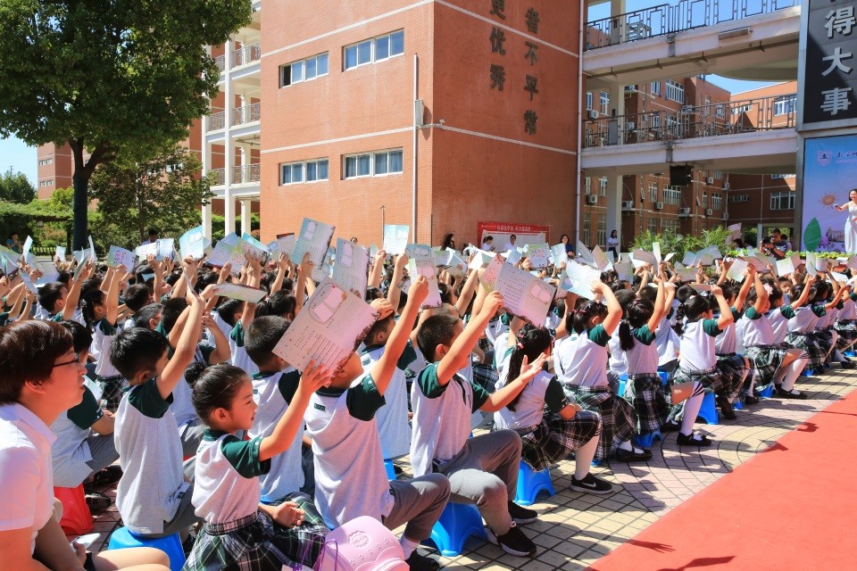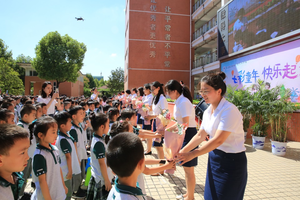 9.20日的天气格外晴朗,美丽的南师附中江宁分校校园鸟语花香。小学部2019级一年级新生入学仪式在大家的期盼中如期而至。家长,老师和同学们欢聚一堂,其乐融融。