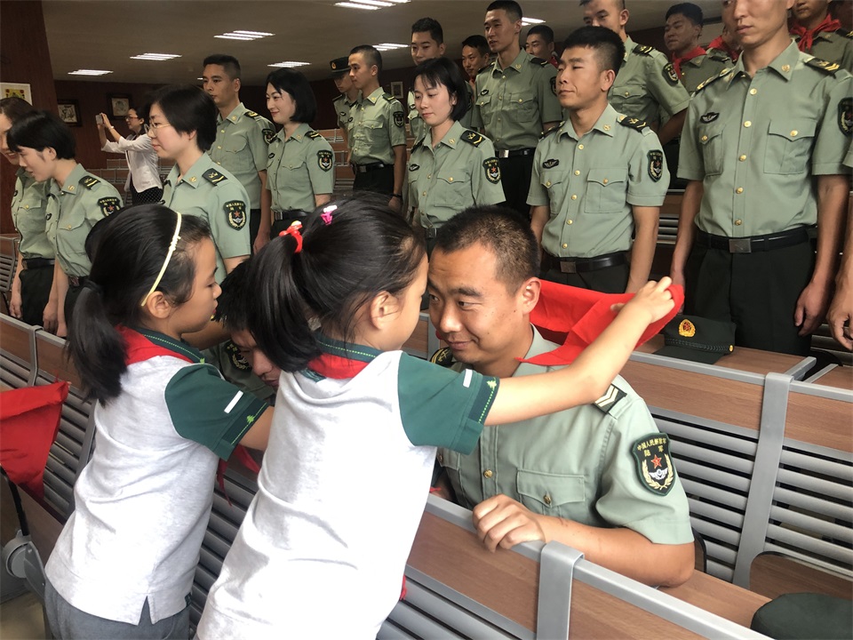 2019年是新中国成立70周年,为了加强学生的爱国主义精神,进一步加强同学们的组织纪律性,培养同学们吃苦耐劳的品质,培养良好的学习生活习惯,小学部开展了为期两天的“国防小卫士”军事体验活动。 通过部队官兵的严明的纪律,整齐的军容,威武的英姿来影响教育同学们。