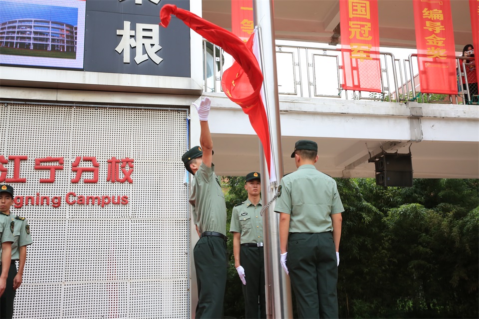 瞧,三名国旗班的解放军叔叔向大家走来,举行了升旗仪式。他们的身板多么笔直,他们的步伐多么矫健,把军人雷厉风行的形象体现得淋漓尽致,我们第一次现场参与这样庄严的升旗仪式,同学们的国歌唱得更响亮,队礼敬得更标准了。