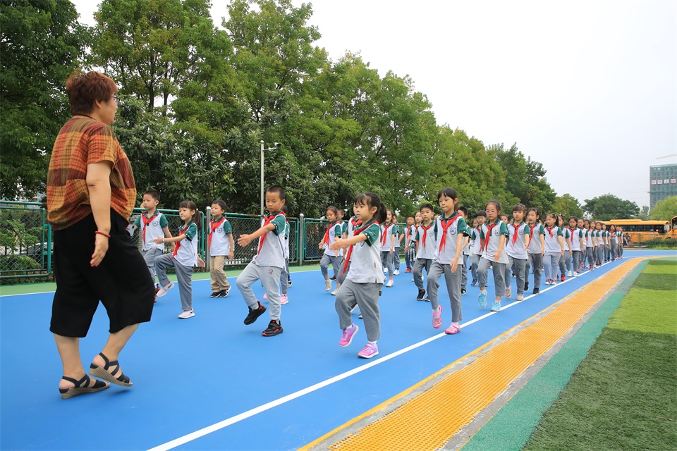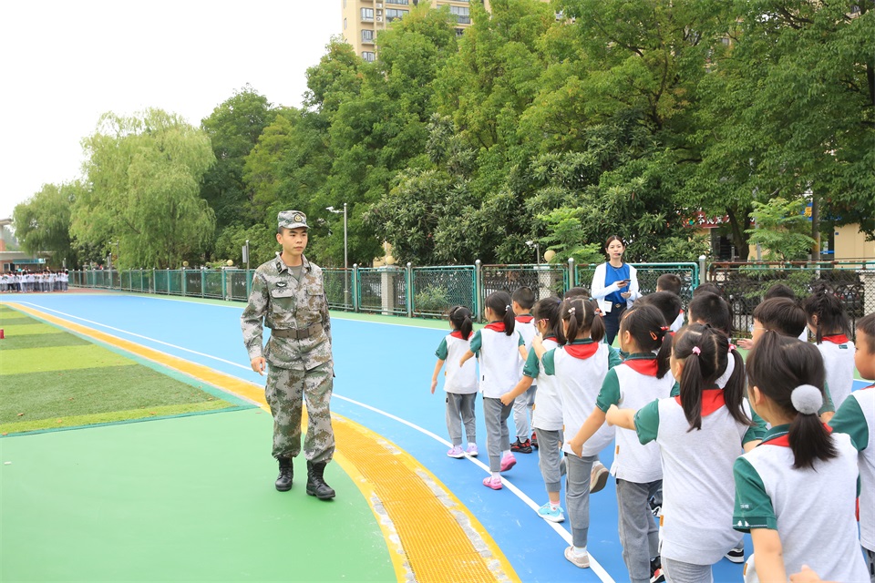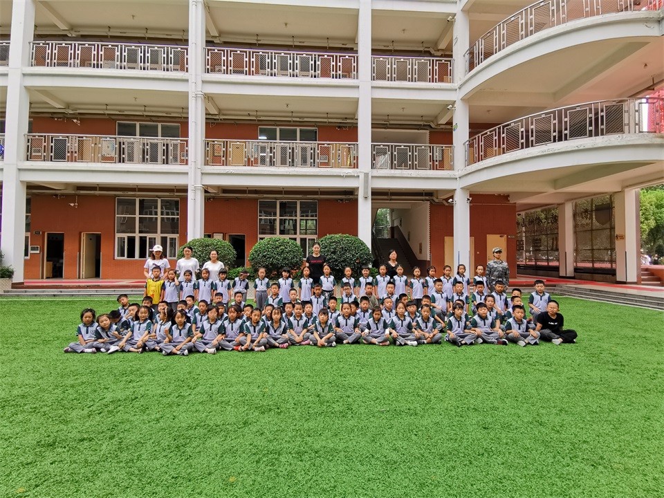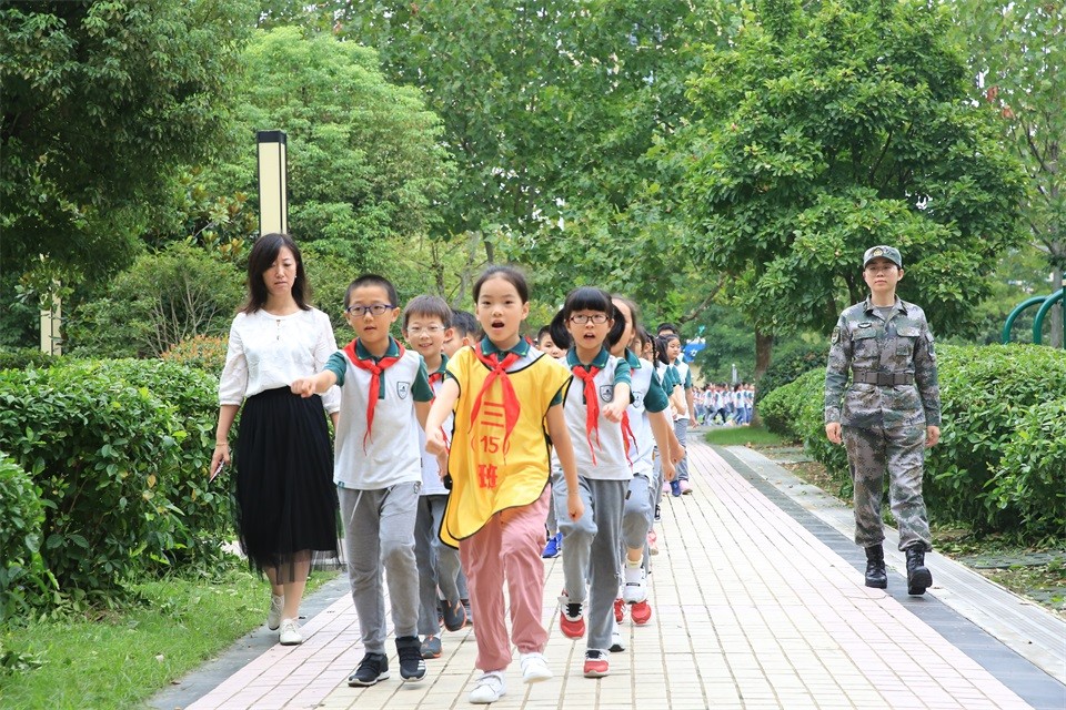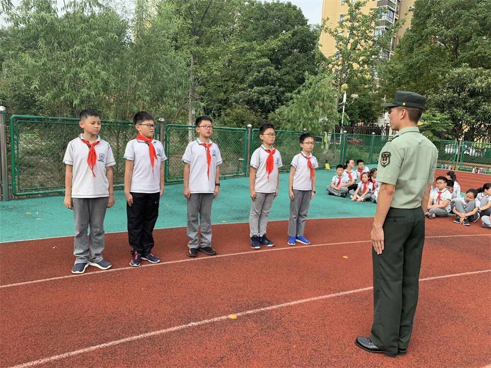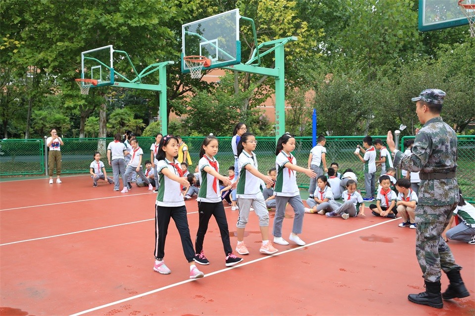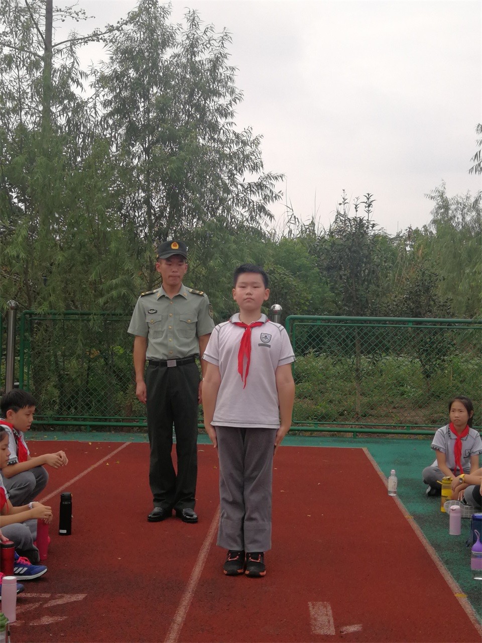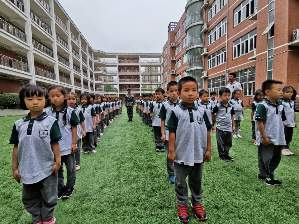 教官们分别到各个年级带领学生们进行军事体验活动。活动中教官口令响亮,不仅言传,而且身教,时刻用自己标准的行动示范给学生学习。学生从站军姿、行进、坐姿等都有了规范的要求,经过专业的训练,同学们的作风和精神面貌都发生明显的变化。“一二一,齐步走”“稍息、立正”……的口号响彻分校校园,学生们秉承“流血流汗不流泪”的军人风采,很多学生汗滴了下来,都不去擦一下;腿站酸了,都不去弯一下。分校小学部学子都希望自己在“国防小卫士”军事体验活动锻炼自己,成长自己,争做活动小标兵。