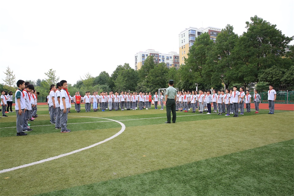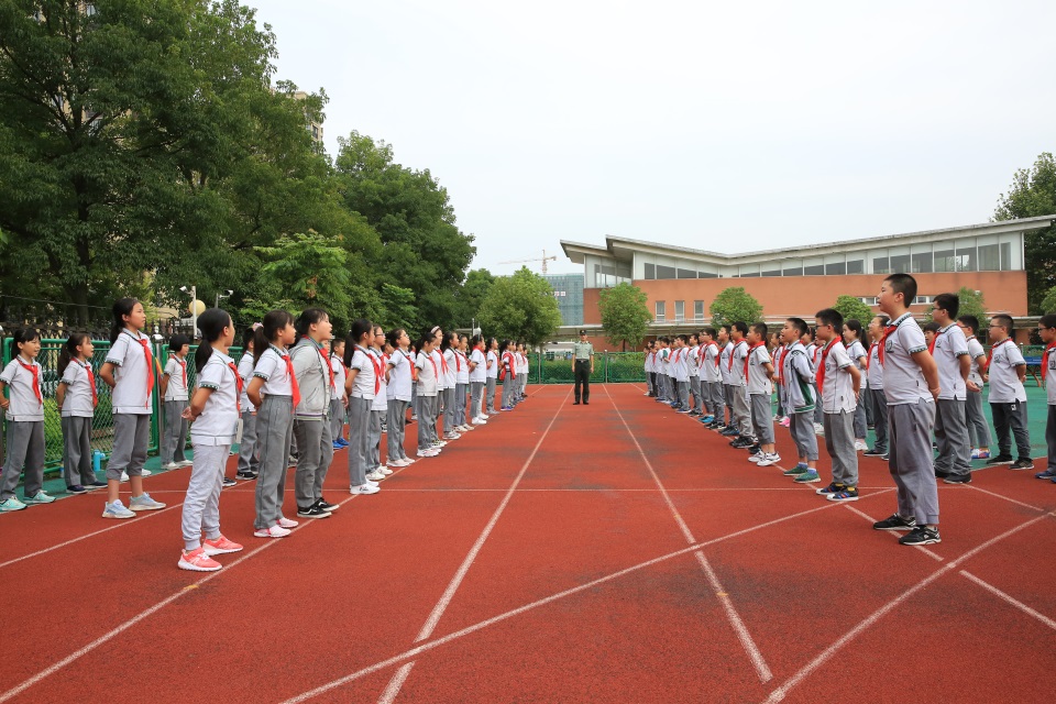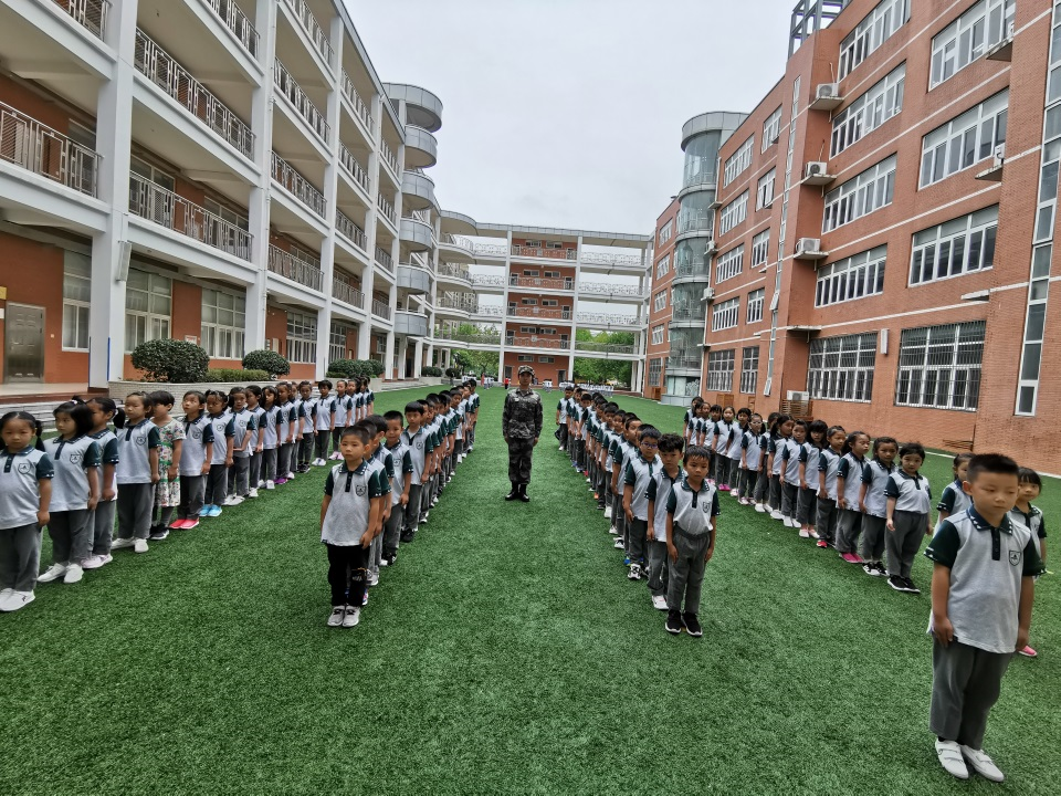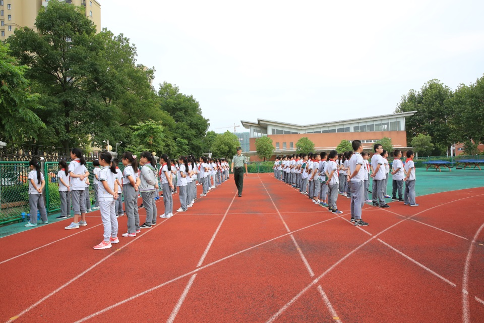 随后,开始了隆重得动员大会,小学部学工处副主任潘虹老师进行了全体讲话,希望同学们能够在这两天中收获成长。朱国军校长也提出了训练要求,希望我们要通过这样的活动,体验军人的坚强与勇敢,感受军人对自己的严格要求,在新中国成立70周年来临之际,通过这次体验活动的优异表现来表达自己对祖国的热爱。