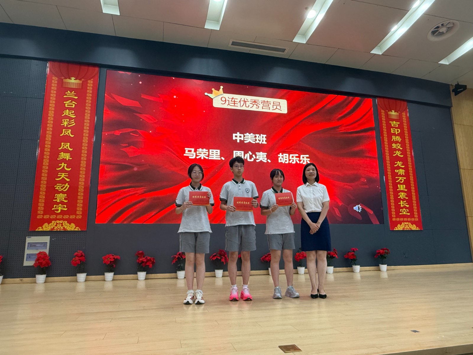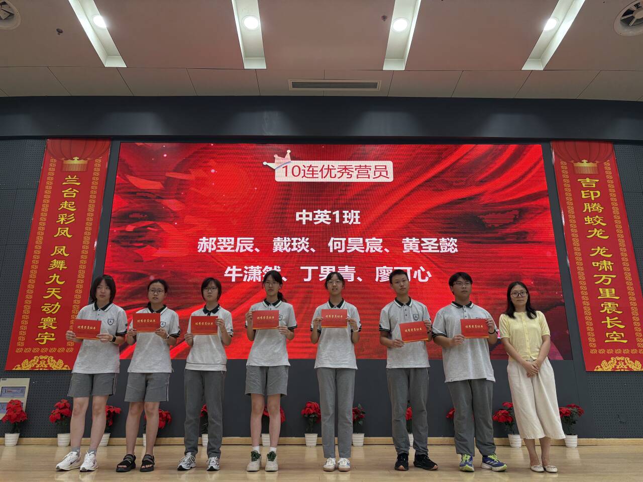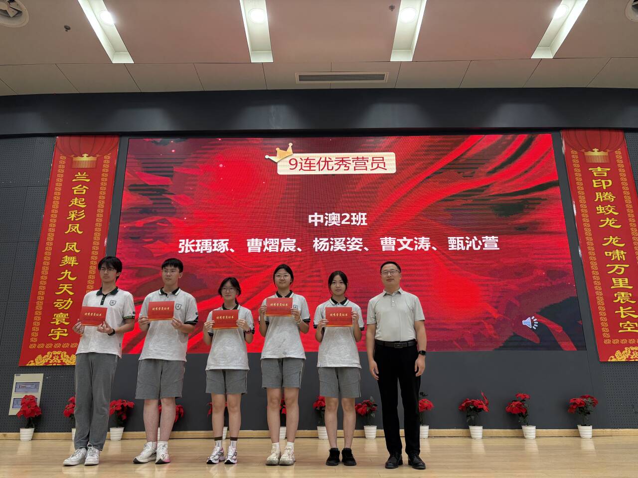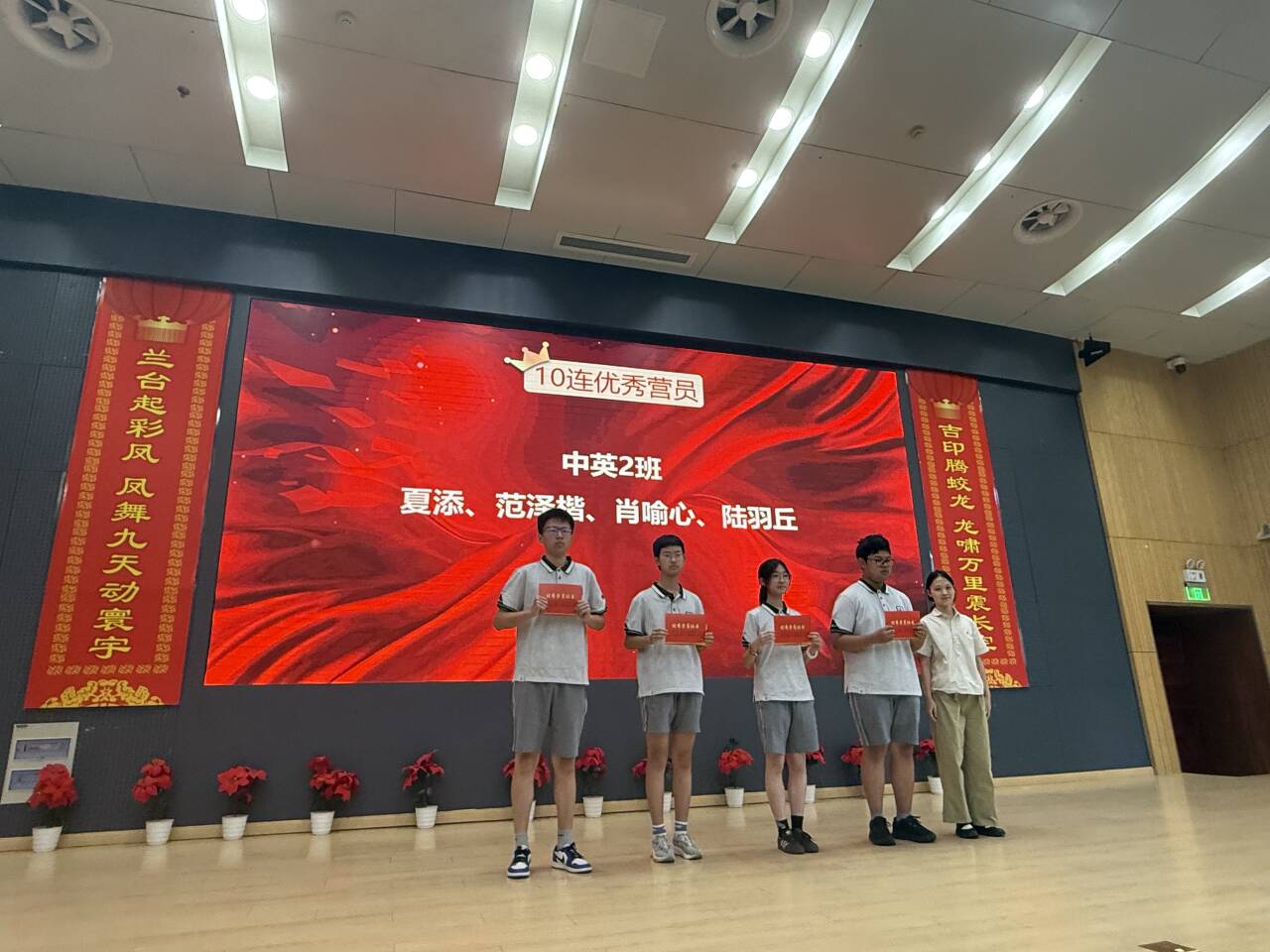 随后,军训"优秀营员"颁奖仪式将现场气氛推向高潮。23名新生代表昂首走上领奖台,各班班主任为他们颁发证书。这些"小军人"以挺拔的军姿、黝黑的脸庞和灿烂的笑容,诠释了青春最美的模样。