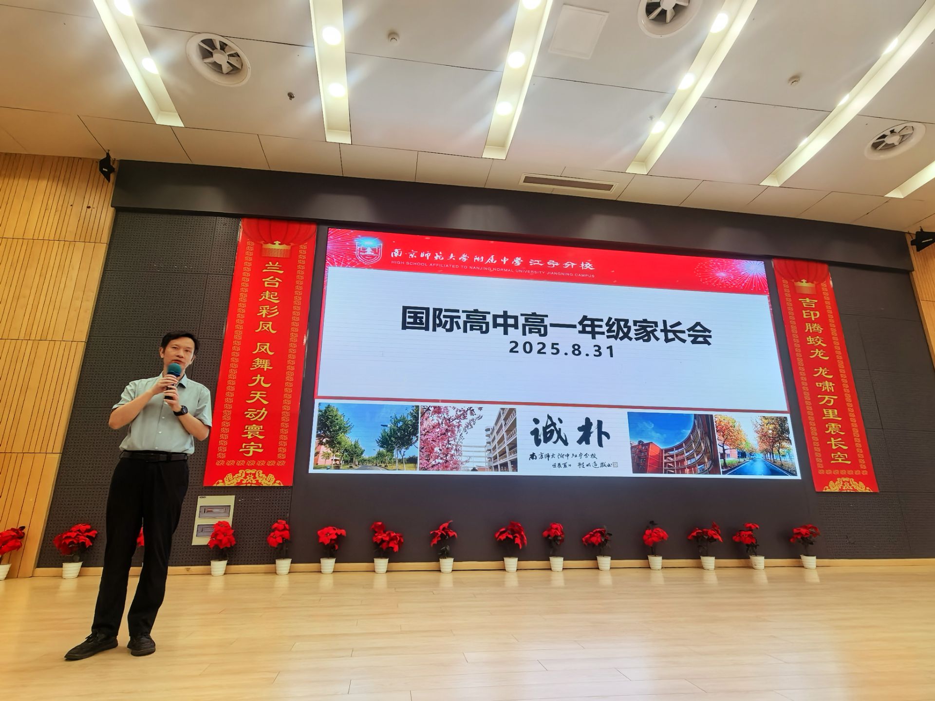 2025年8月31日,南师附中江宁分校国际高中高一年级新生家长会在校报告厅举行。全体新生与家长共赴这场以"成长"为主题的盛会,共同见证青春启航的重要时刻。