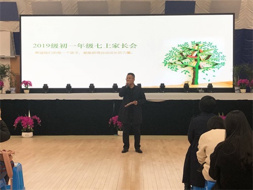 11月17日下午初一年级举行主题为“希望每个孩子都获得自由成长的力量” 期中家长会暨第三次家长学校活动。会议分为年级集中会议,班级会议,教师约谈交流三个大环节依次开展。