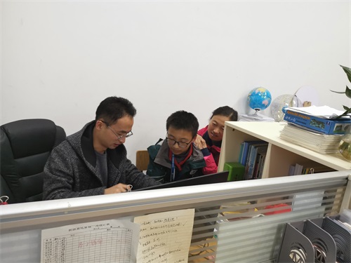 在学习问题上,班主任针对每个孩子的情况,尽量做到一对一地和家长一起商讨孩子目前的薄弱学科、目前学习中存在的问题,然后把学生一起喊来制定目标。