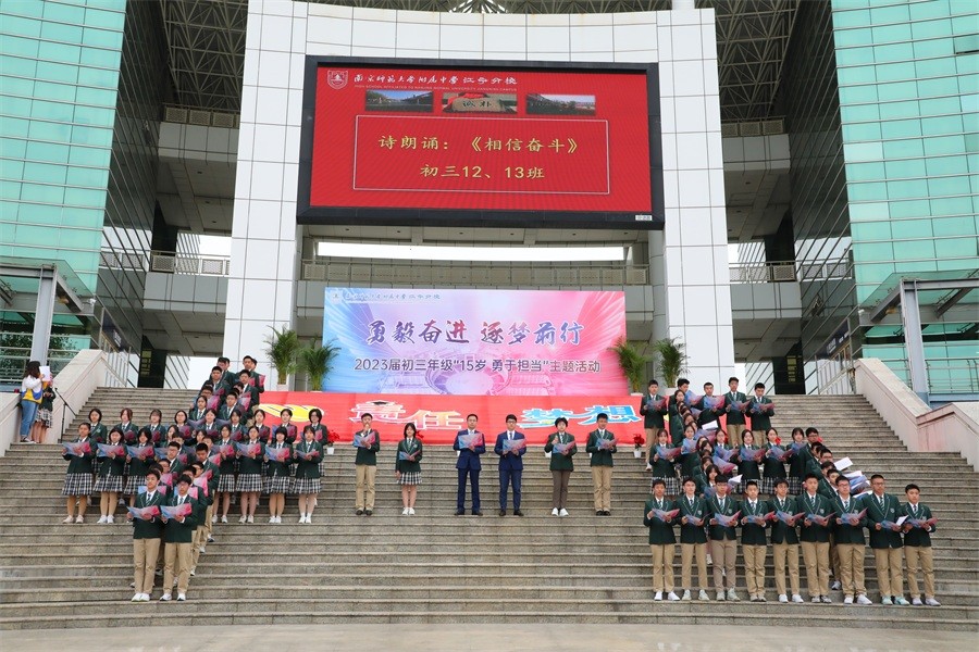 3月11日上午,南京师大附中江宁分校开展以“勇毅奋进,逐梦前行”为主题的初三年级15岁勇于担当主题仪式活动。