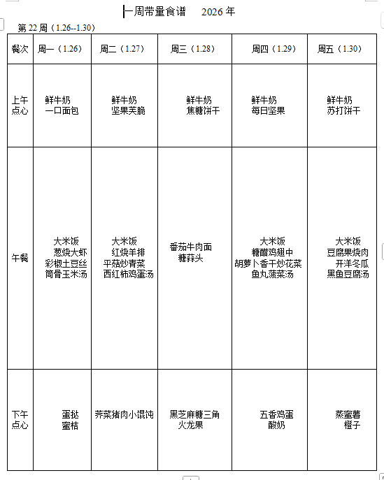 幼儿园第二十二周食谱