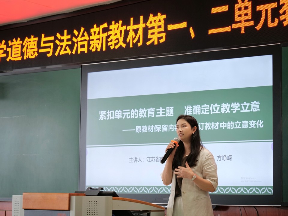 活动尾声,江宁区教学研究室教研员方峥嵘老师带来《小学道德与法治新教材中微调内容的教学新理解》专题分享。她结合教材修订背景,细致解读微调内容的设计意图与教学要求,指导教师精准把握教材变化,更新教学理念,确保新教材教学方向不偏差、效果不打折。 本次培训以课例为实践依托,以专家解读为理论支撑,有效打通了新教材教学 “理论与实践” 的壁垒。通过现场观摩课例、聆听专业解读,不仅解决了教学中的实际困惑,更明确了后续优化教学方法、提升课堂质量的方向。