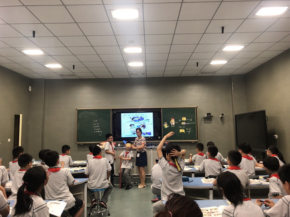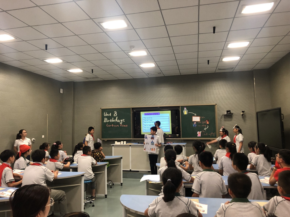 英语组集体课题组成员陈洋洋和俞静蓓老师对于《戏剧元素在小学英语表演教学中的应用》面向小学部开设研讨课。课题组所有成员做了充分准备,首先成员们集中研讨教学设计,上课老师查阅资料,充分的备课,几次打磨,力争精彩展示。这两节课教师充分运用教学内容,结合戏剧元素,创造性地引导孩子发挥想象,合作表演,老师用戏剧教学方式让学生们从表演中发掘学习的乐趣,发现自己的潜能,从各种情境表演体验教学中知识的习得和运用,课堂中适时的教学评价,及时反馈教学,两节课得到听课老师的一致好评。
