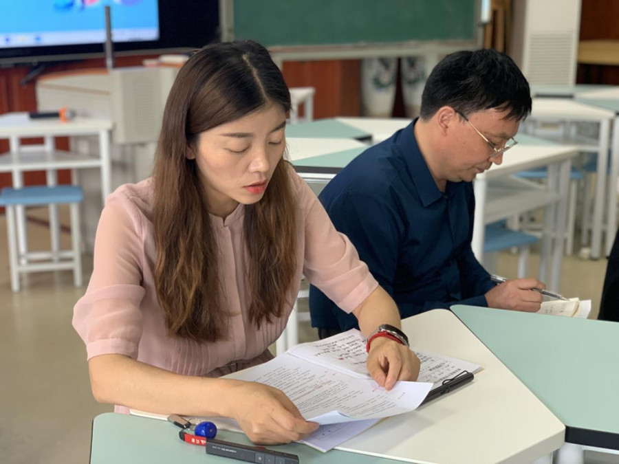 课堂结束后,工作室专家张建忠主任带领工作室成员对本次课堂教学活动展开交流,工作室的老师们各抒己见,最后张建忠主任进行了总结。张主任首先评价本次课堂教学是一次成功的研究课与展示课,主要表现在以下几个方面:1、读悟相辅相成,读悟相促。2、本次课堂能够聚焦语文要素。3、课堂有主问题引领。4、课堂中的广角阅读。肯定课堂的同时张主任也对本节课给出了建议:研读的过程中,在主问题的引领下,是否可以思考借助故事逻辑切割板块,优化教学设计,让教学条理更加清楚。在张主任的指导之下。工作室成员打开思维,对课堂教学又有了新的思考,新的收获。