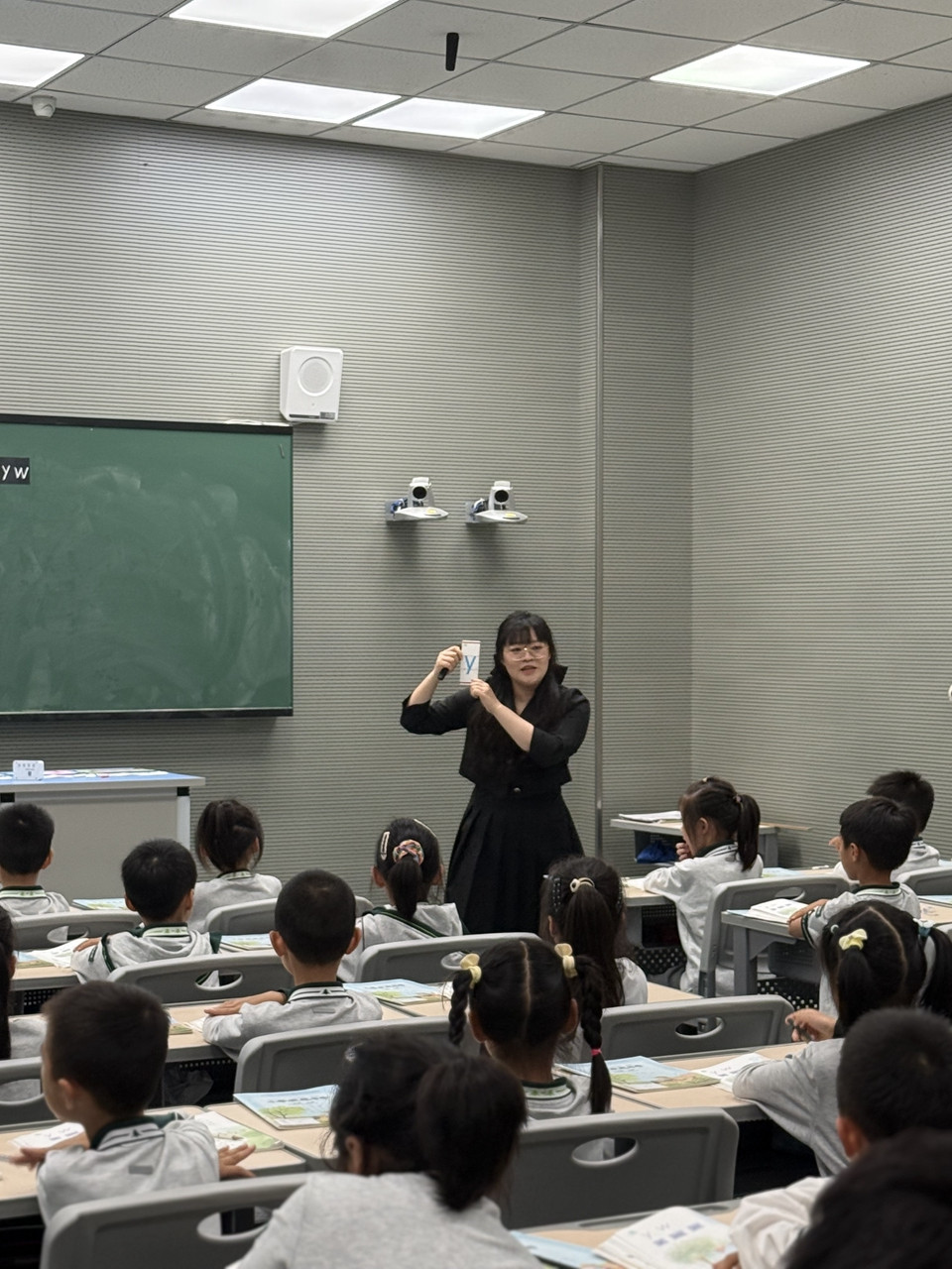 随后,夏书涵老师带来《y w》一课。她以生活中的“衣服”“乌鸦”等词汇为切入点,引导学生在情境中学习拼音,注重发音的准确性和趣味性。夏老师还设计了小游戏,让孩子们在玩中学、学中乐,课堂气氛活跃而有序。