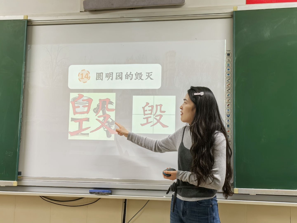 随后,杨洋老师以《圆明园的毁灭》为载体开展公开课。导入环节,教师用 “5 个故宫、8 个卢浮宫” 的直观数据展现圆明园规模,结合 “毁” 字字形拆解,点燃学生学习热情;初读时以 “圆明园罹难日小小讲解员招募” 为情境,学生在听读、思读中梳理课文结构,充分践行 “以读为本” 理念;精读环节围绕布局、建筑、文物、毁灭展开,通过领读、点读、齐读等多样形式,搭配 “拱”“殿” 字解读与历史资料补充,学生深入感悟文本,借 “凡是、统统” 等词体会侵略者残暴时,课堂情感共鸣强烈;课后评课中,教师们从 “理念落地”“学生参与” 等维度点评,提出优化建议,形成完整教研闭环。