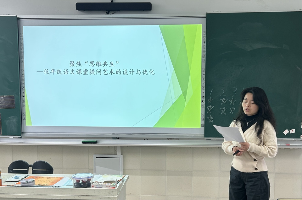 活动第一环节,曹亚琴老师开展了题为《聚焦“思维共生”:低年级语文课堂提问艺术的设计与优化》的主题讲座。