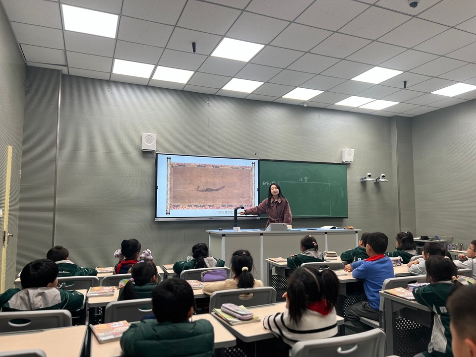 孙倩老师执教了识字课《江雪》。她以冬日雪景视频为引,将古诗意境与识字教学深度融合,聚焦“绝、径、踪、孤、舟、翁”6个生字设计教学环节:先通过“象形字观察(‘舟’像小船)”“情境识字(‘翁’指钓鱼老爷爷)”“组词拓展”等多元方法帮助学生识记生字,搭配渔船模型、蓑笠头饰等实物道具,让抽象汉字变得直观可感;再结合“生字找朋友”“看图猜字”等趣味游戏巩固认读,还融入“诗句接龙”“关键词重读”等环节,让学生在古诗韵律中强化生字记忆,同时初步感受诗句的画面感。课堂上,学生积极参与互动,在“玩中学、学中悟”的氛围中扎实掌握了识字内容,更萌发了对古典诗词的喜爱。