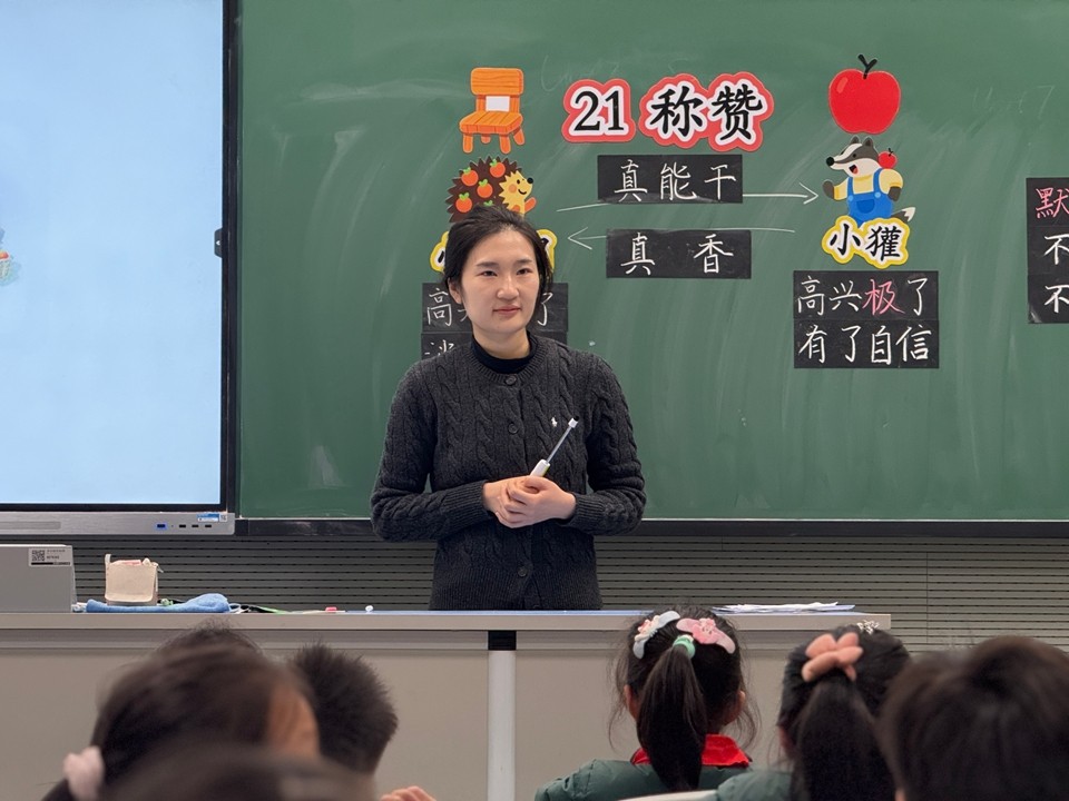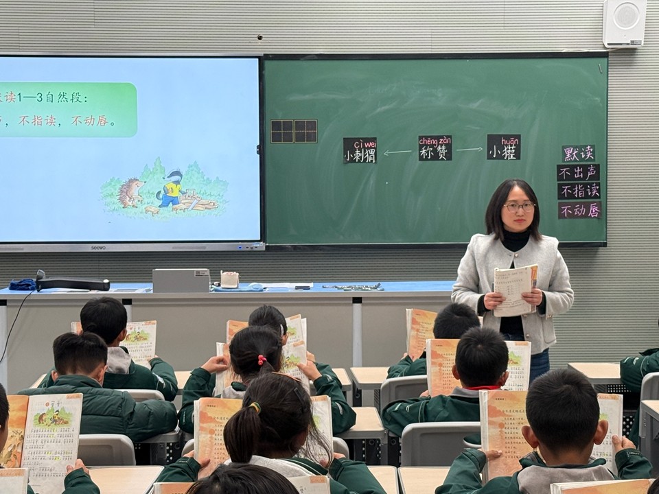 两位老师以二年级上册《称赞》一文作为课例。闻老师的课堂环环相扣,以小刺猬和小獾之间互相称赞作为主线,带领学生学会默读课文,在朗读中感受称赞的力量。张静老师则是以表扬课堂里坐姿端正的孩子引入“称赞”话题,带领学生从文本中感受称赞的魔力,从而学会称赞。两节课后,特级教师刘军老师进行了精要点评,她指出《称赞》一课不仅是教会孩子感受称赞的魔力,更是要教会孩子学会称赞,真诚地称赞。称赞要有边界,过多则是奉承。所以称赞别人,既要让人听着舒服,也要表达自己的真诚之心。刘老师指出,这篇课文不仅是教孩子学会称赞,也是给老师们一些启发,不要吝啬表达自己对他人的称赞。活动最后低语教研组长王丽云老师进行了总结。这不仅是一次评课,更是一种指导,一种交流、一种学习。仰高笃行,知新致远。
