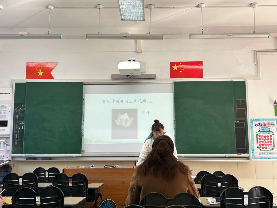 12月25日,备课组开展第14次教研活动,针对三年级下册第一单元再备课。教师们先对单元教材进行深度分析,明确《荷花》一课的教学重点:引导学生感受荷花的外形、姿态与神韵,通过想象将文字转化为画面;同时设计“对比其他花卉、分享对荷花的想象”等互动环节,让学生在表达与交流中深化对文本的理解,让写景类课文的教学更具趣味性与实践性。接着讲解《昆虫备忘录》的教学重点,明确什么叫做备忘录。结合课文,寻找有意思的语言,体会昆虫的特点,感受有趣。