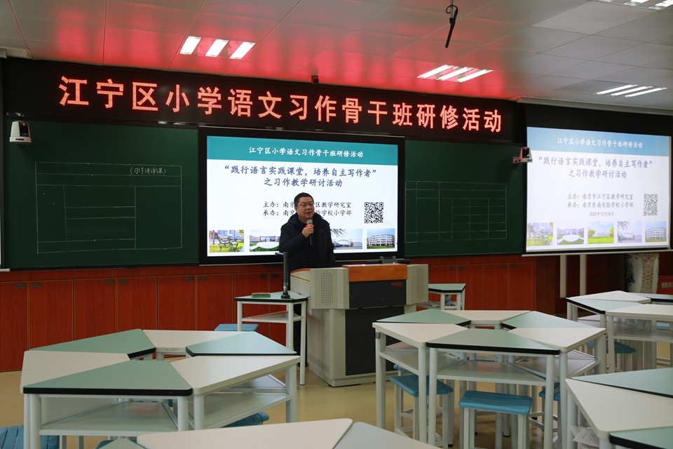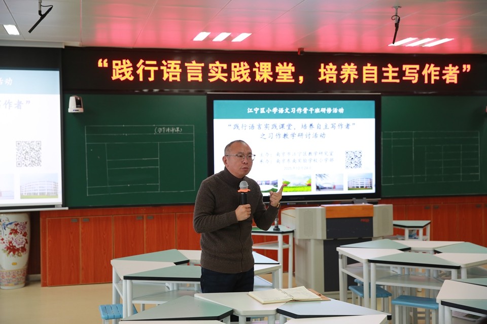 2025年12月24日上午,江宁区小学语文习作骨干班研修活动在南京东南实验学校小学部成功举行。本次活动的主题是“践行语言实践课堂,培养自主写作者”,旨在深入探索语言实践导向的习作教学模式,着力培养学生成为自主、自信的表达者。区第三届习作骨干班全体学员及吴勇名师工作室成员齐聚一堂,通过课堂观摩与专家引领,共同研讨习作教学的有效策略。