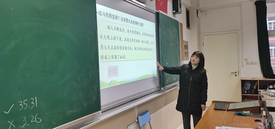 郭梦蝶老师首先进行主备分享——第二十六课《手术台就是阵地》,郭老师首先就此篇课文从“略读课文”调整为“精读课文”的转变为大家强调了课文的重要性和教育意义。郭老师能够抓住课文的难点,出示文中一些与战争背景相关的词句,利用图片、视频等教学手段出示相关背景知识,帮助学生理解课文。