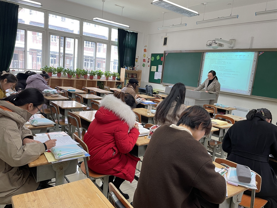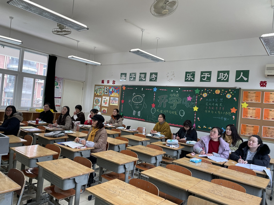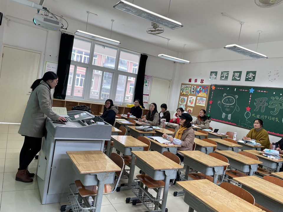 2月13日上午11时许,二年级语文备课组的老师们正在二(14)班教室里进行第一周的集体备课活动。组长张静老师正在就开学初的备课、教学、作业等情况作相关的要求。老师们认真临听,积极记录,为新学期开个好头做好准备。
