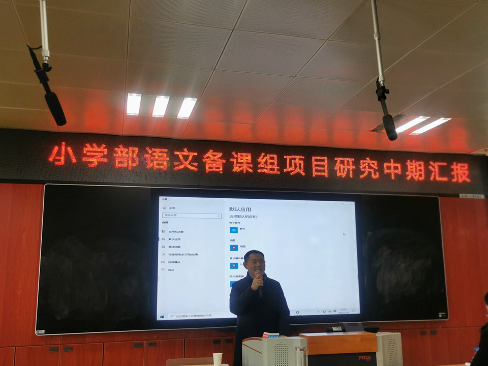 2月24日下午,小学部语文组全体成员阶梯教室,开展了以“小学语文备课组项目研究中期汇报”的教研活动。一到六年级共六位备课组长分别对上学期备课组项目研究进行了总结,提出了研究中的困惑,并对下一阶段研究进行了计划和部署。