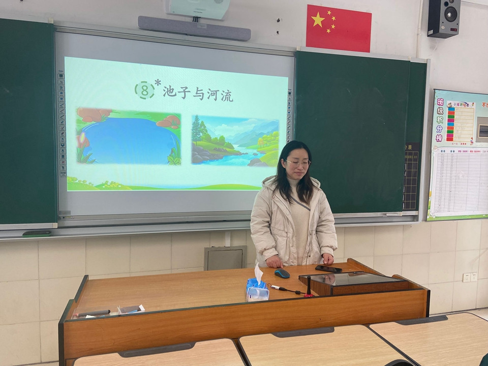 活动的第一个程序是主备老师发言。首先,主备《鹿角和鹿腿》、《池子与河流》的祁艳荣老师详细讲解了本课的设计思路和教学流程,尤其重视让学生联系生活实际理解故事深刻的寓意。