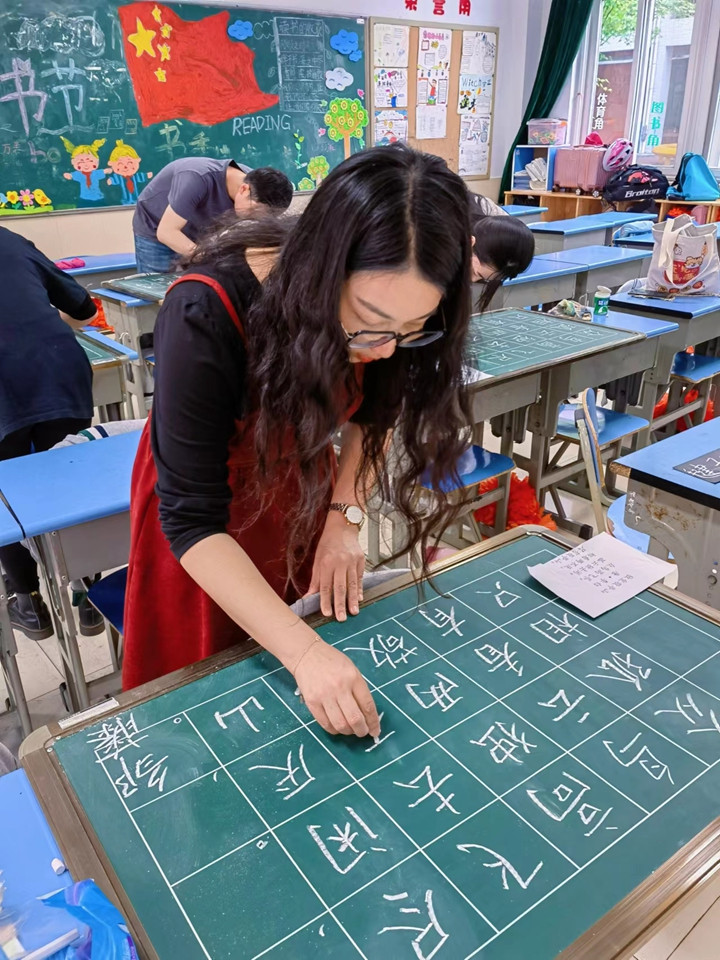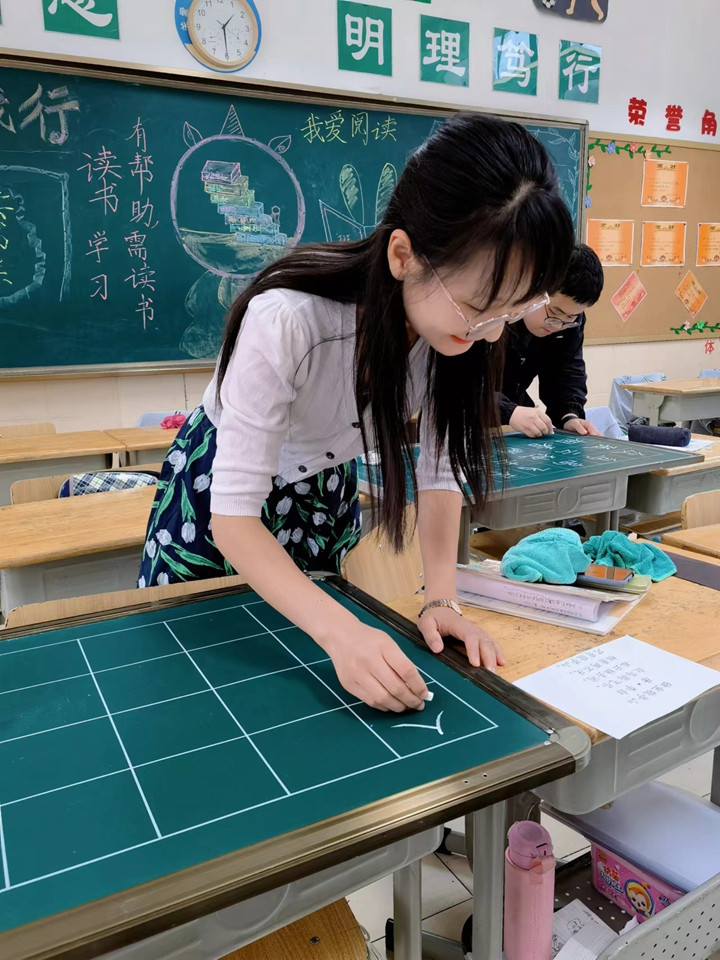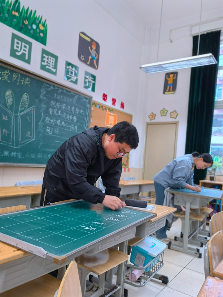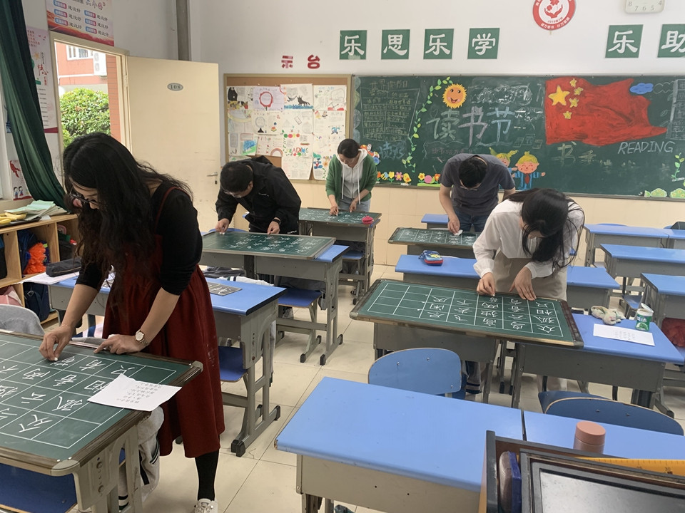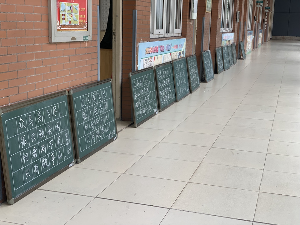 粉笔字作为青年教师的重要基本功,一直备受重视。此次比赛,教师们共写古诗《独坐敬亭山》。大家汇聚平时练习所得,点横撇捺,一笔一划,一丝不苟,一幅幅美丽的作品展出在校园里。