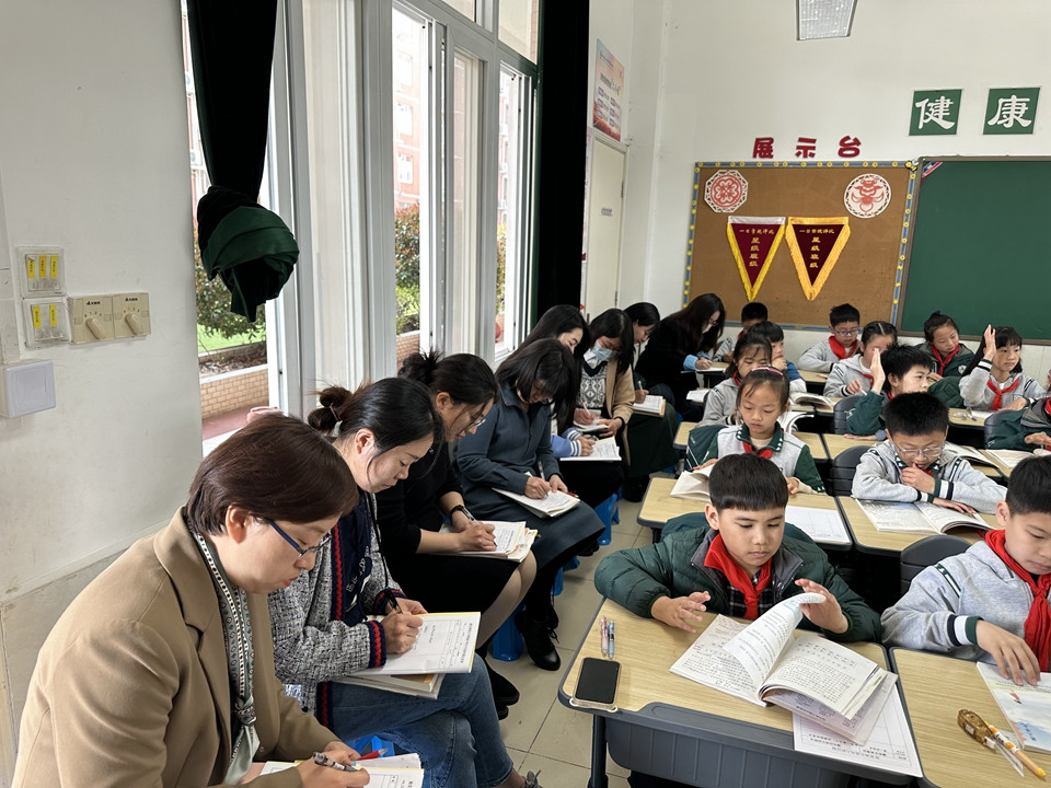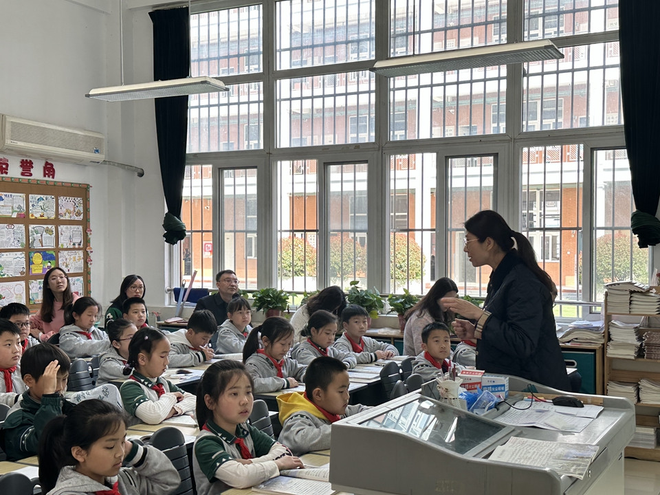 “学而不思则罔,思而不学则殆”,反思是进步的动力,两节专家课结束后,中语组专家组老师们都在208积极评课,及时和授课老师交流、探讨。三年级备课组长张静提出陶天慧老师的课结合了学校网红玉兰的观察描写,特别有创意。四年级备课组长许玲玉老师表示周丹老师的语言亲切自然,让孩子们感受到了不一样的课堂。中语组教研组长镇洁老师也积极发言,她指出陶天慧老师的识字教学还结合了《字在乐园》里的教学方法,两位老师都精心备课,有了不同程度的进步。张建忠主任课后给这两位老师提出了宝贵的建议:语文课堂老师们要把教学目标中的训练点落实到位,不宜贪多。如《荷花》这节课想象画面,要给学生具体的抓手,直接提出想象画面太宽泛,可以变成你仿佛听到了什么?看到了什么?闻到了什么?在《飞向蓝天的恐龙》这课授课时,在指导学生练习有条理的复述时,要能做到镂空关键词,再依次减少文本中介绍恐龙特点关键词,最后以白板的形式出现,这样复述训练会有铺垫,有过程,另外学生们课堂上的讲解还需要做到口语化、个性化的表达,这一来,本节课的这一个训练点就扎实到位了,时间安排也会更合理。