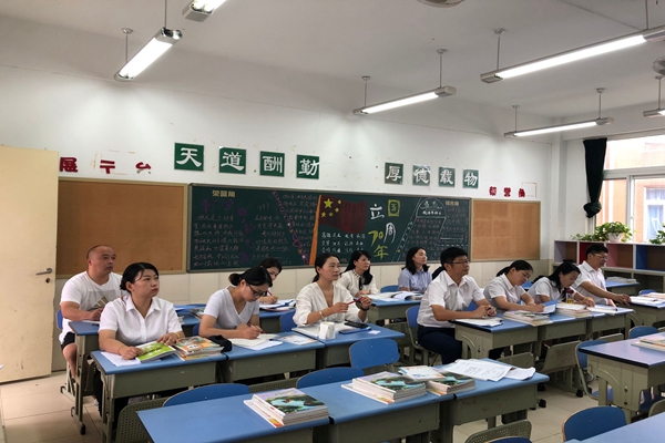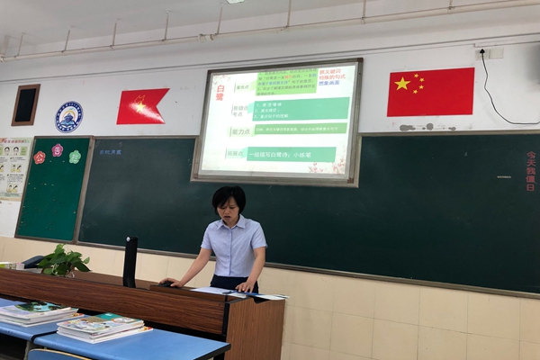 9月1日上午,学生还未报到,五年级语文备课组在校内开展集体教研活动。