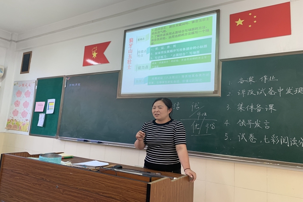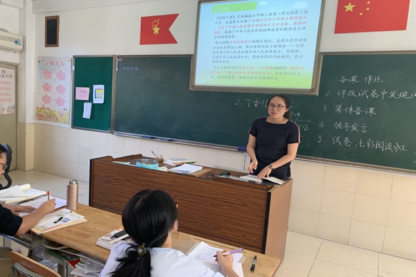 9月18日下午,六年级语文组老师照例集中在六(5)班教室开展备课组活动,就两位老师的课例,抓住第二单元语文要素——“点面结合”开展了研讨活动。